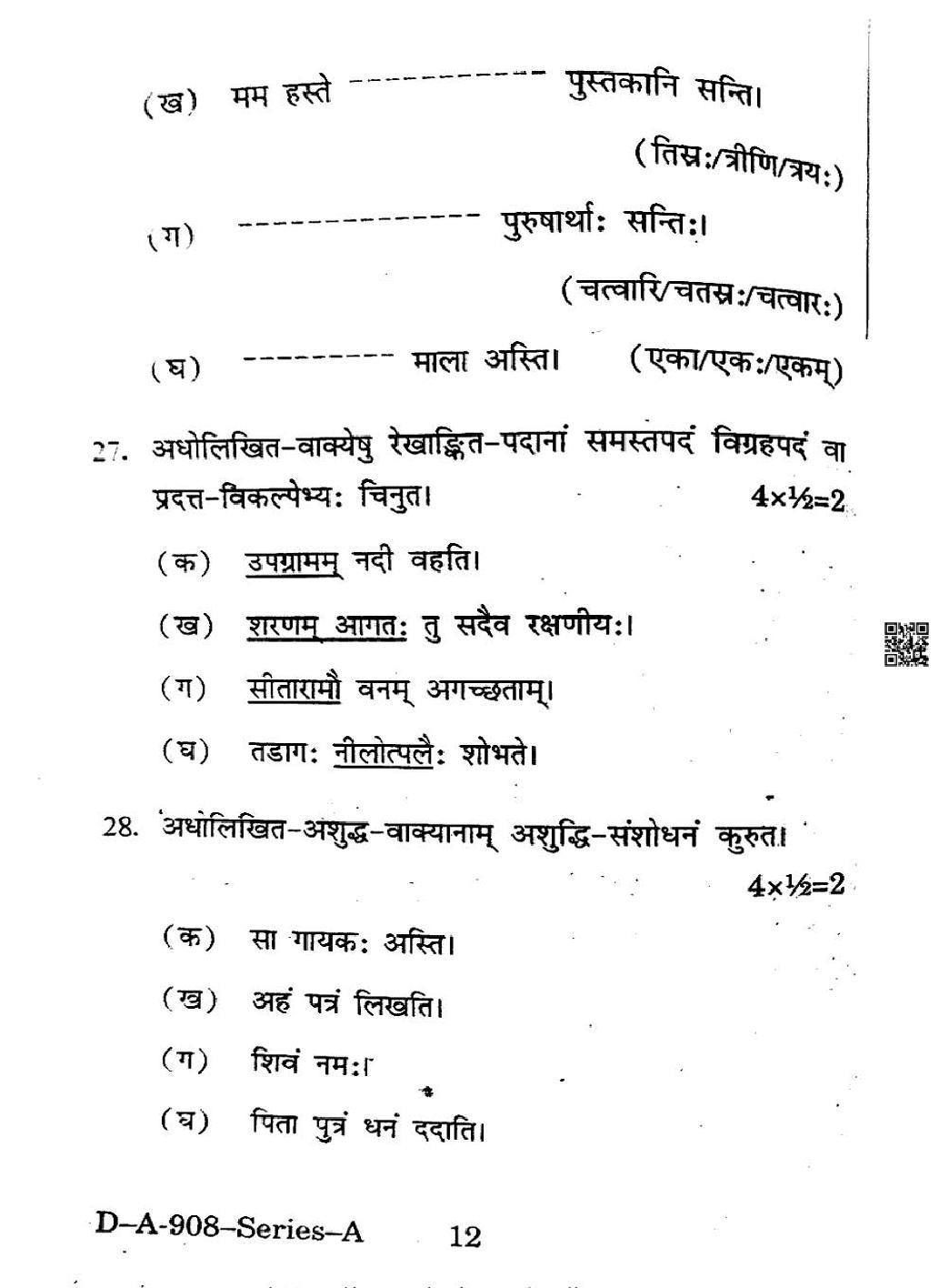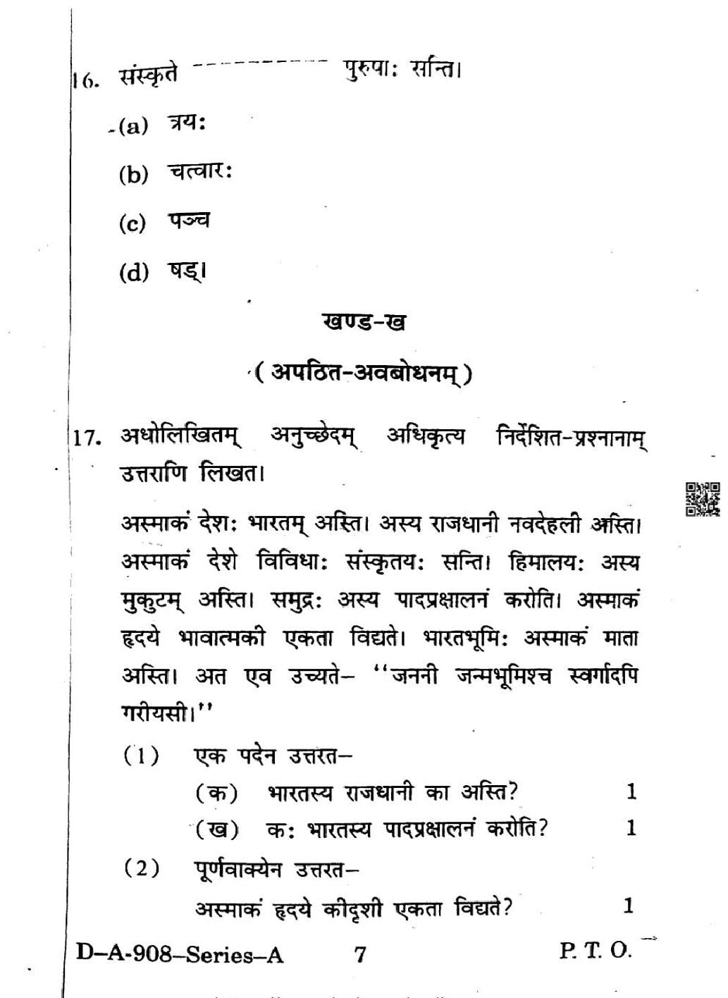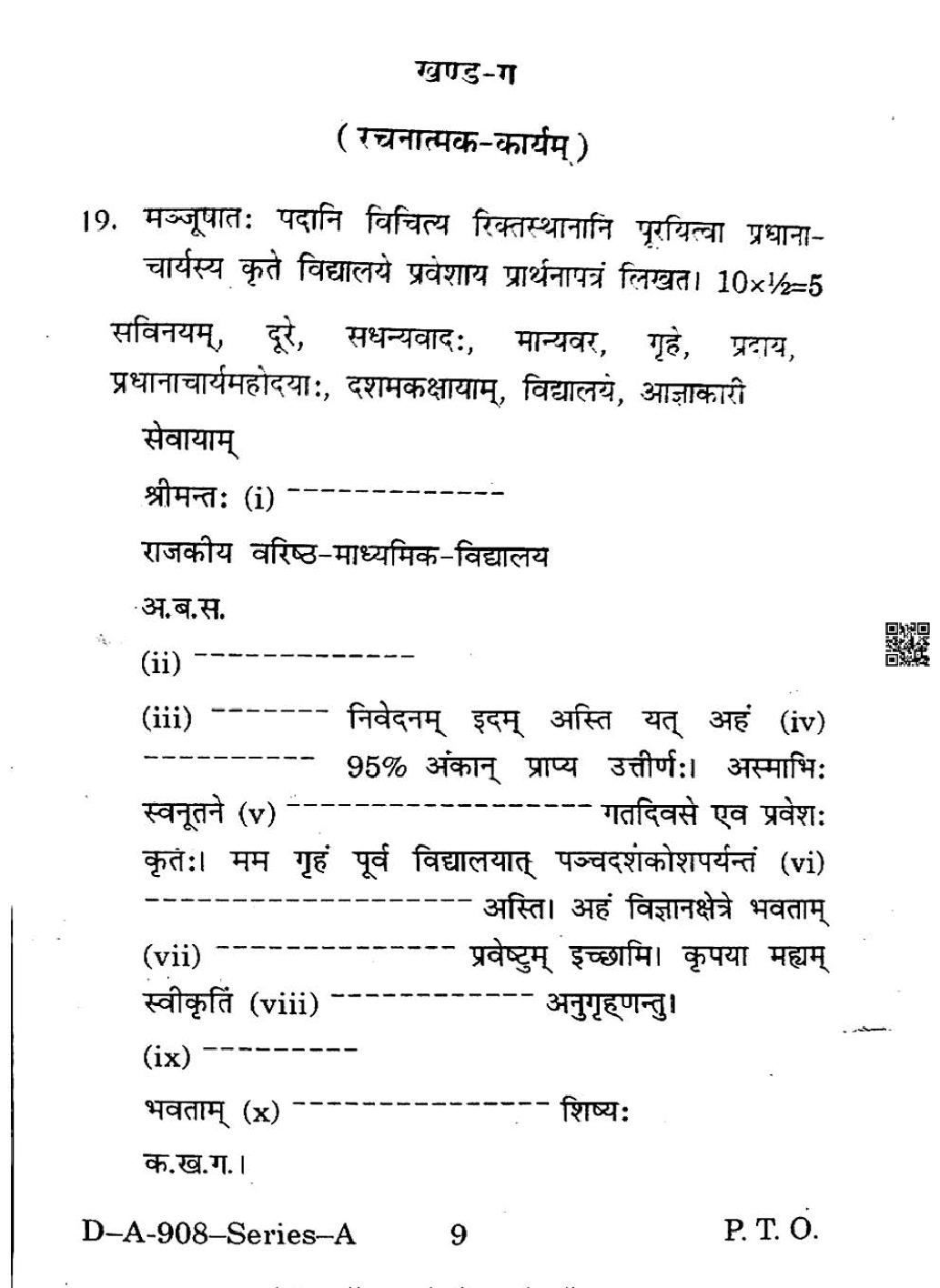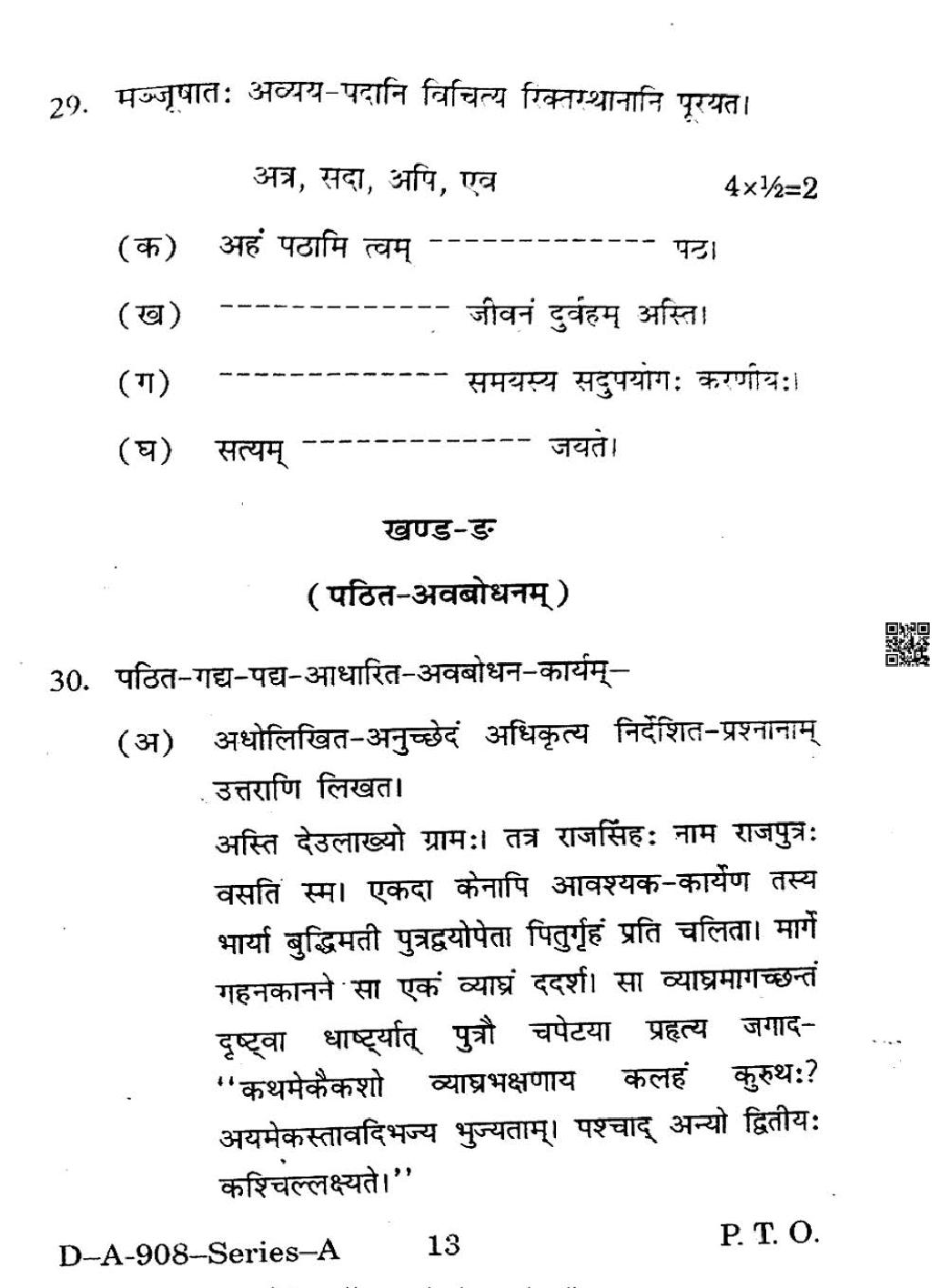 | Study Material Here | HP Board Previous Year Question Paper for Class 10 Sanskrit |