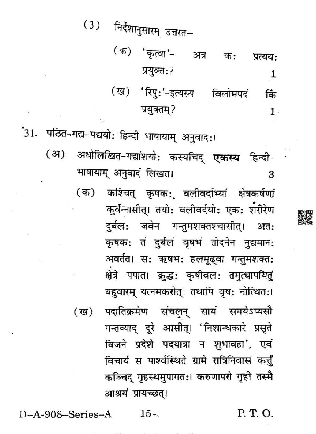 HP Board Class 10th Sanskrit Question Paper 2024 PDF – Click Here to Download Question Paper PDF