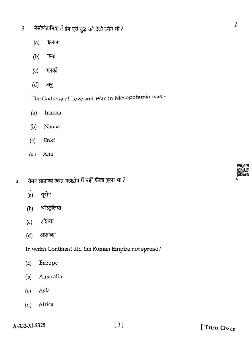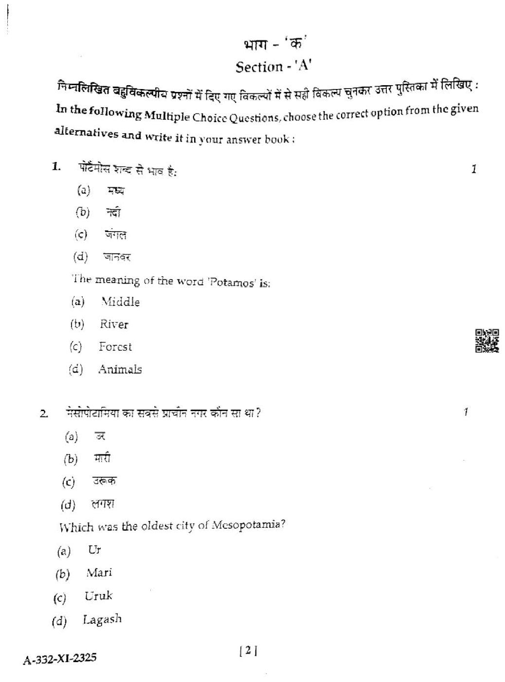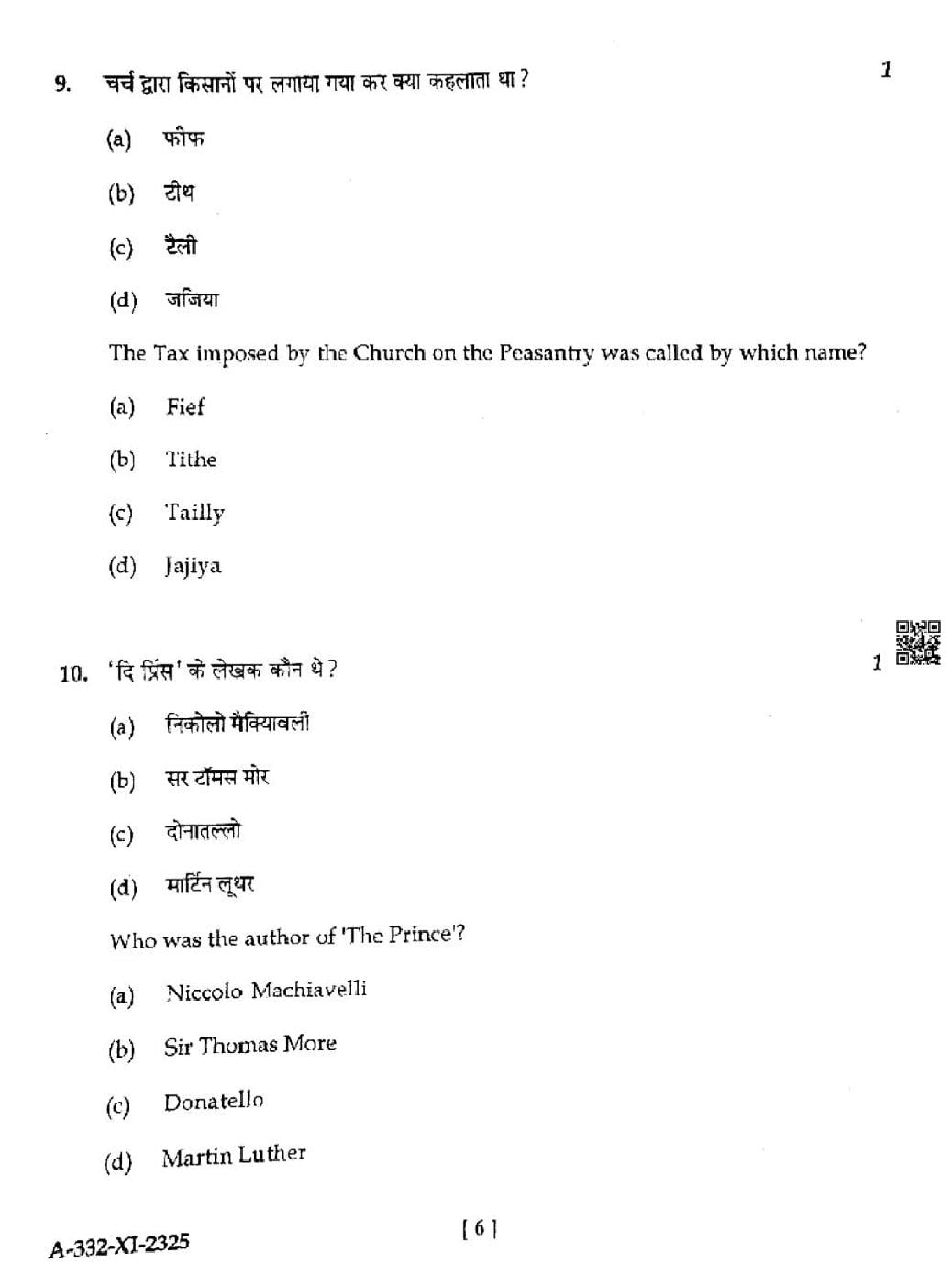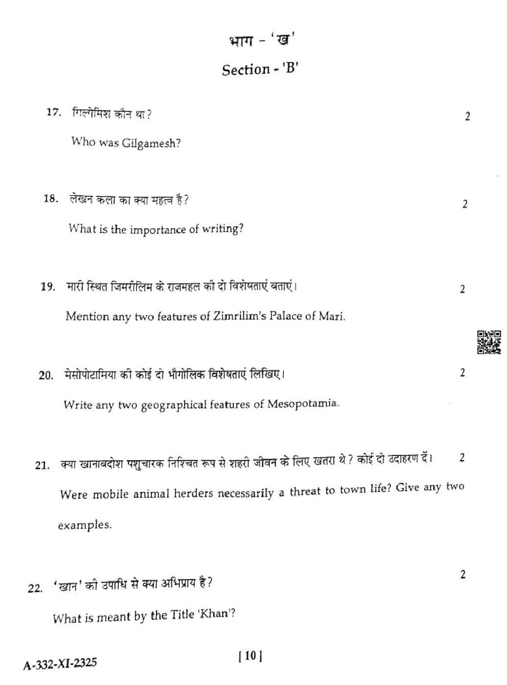 HP Board Class 11th History Question Paper 2025