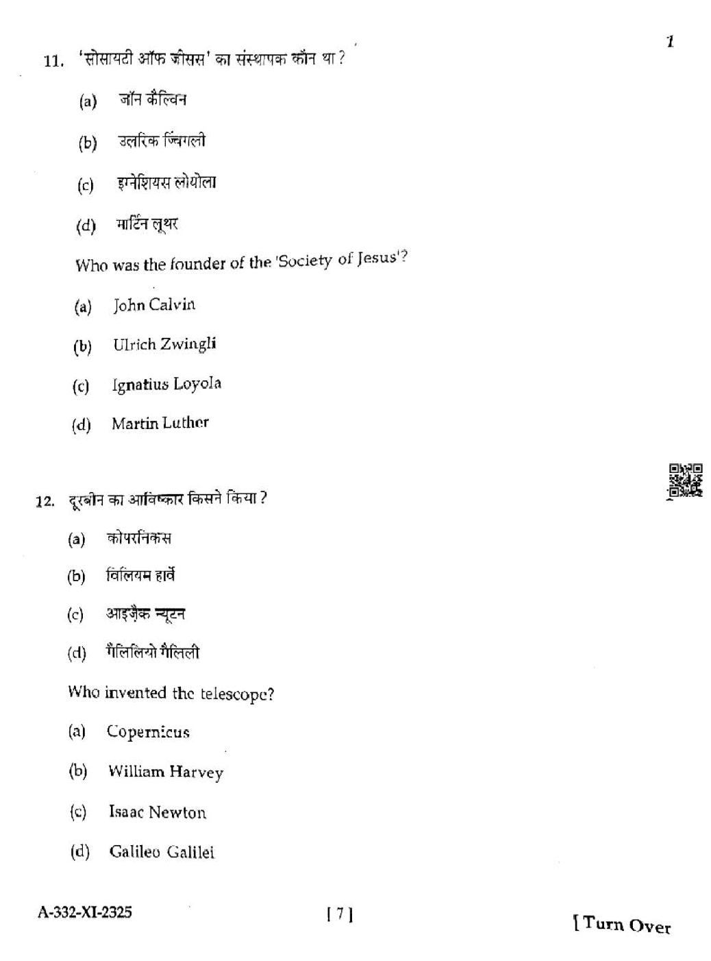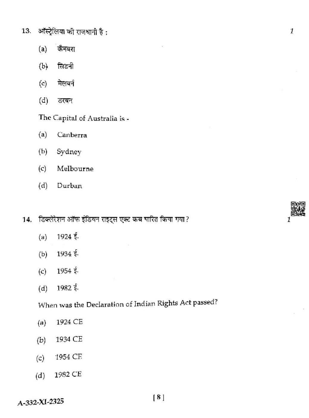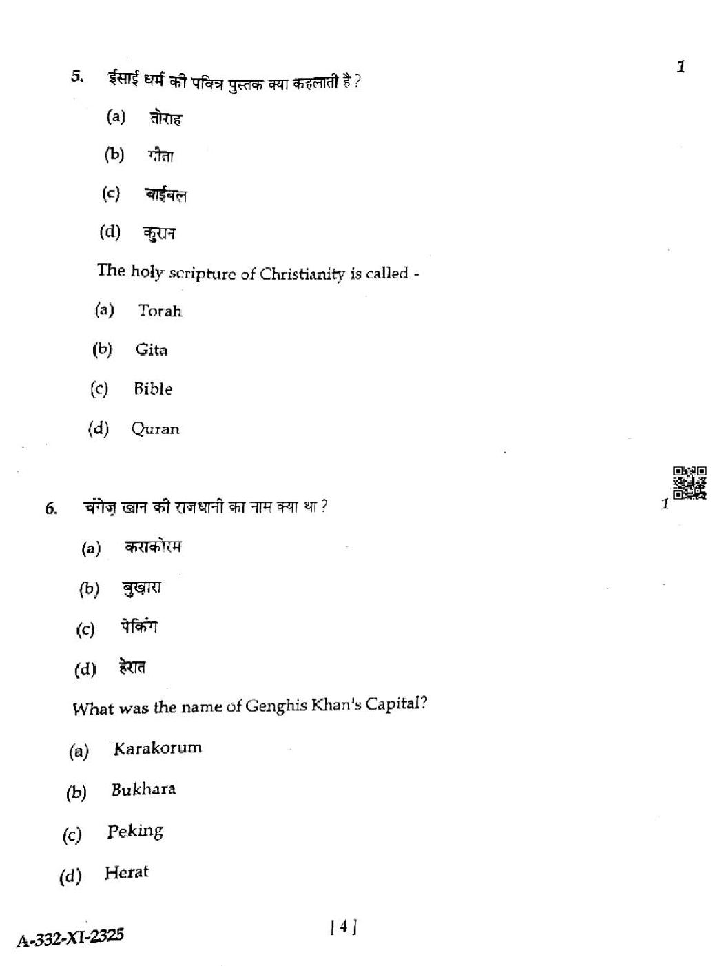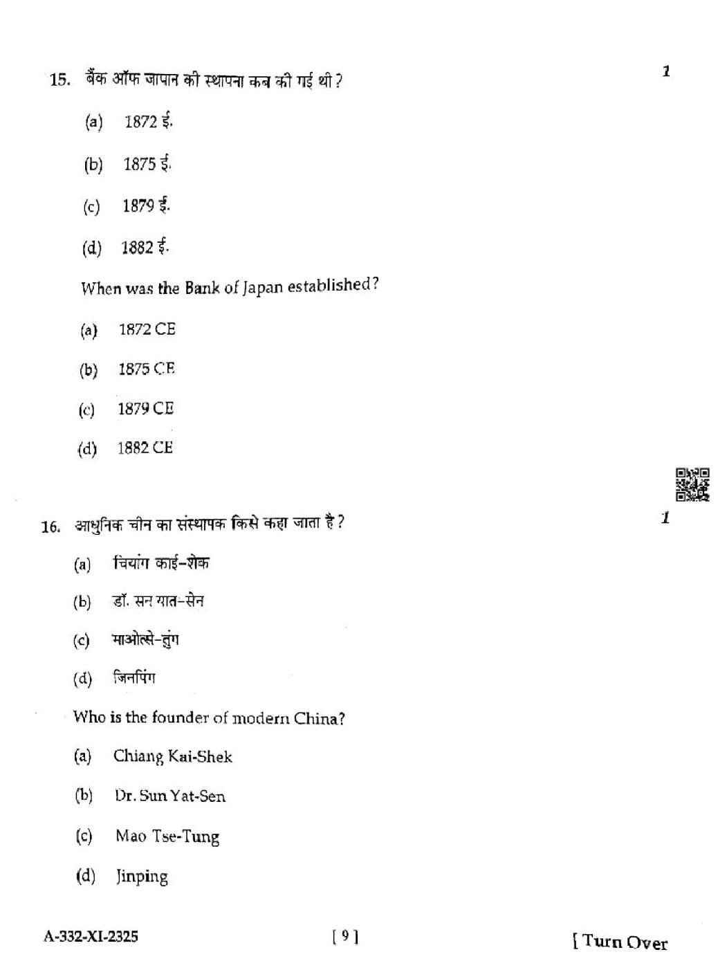 HP Board Class 11th History Question Paper 2025