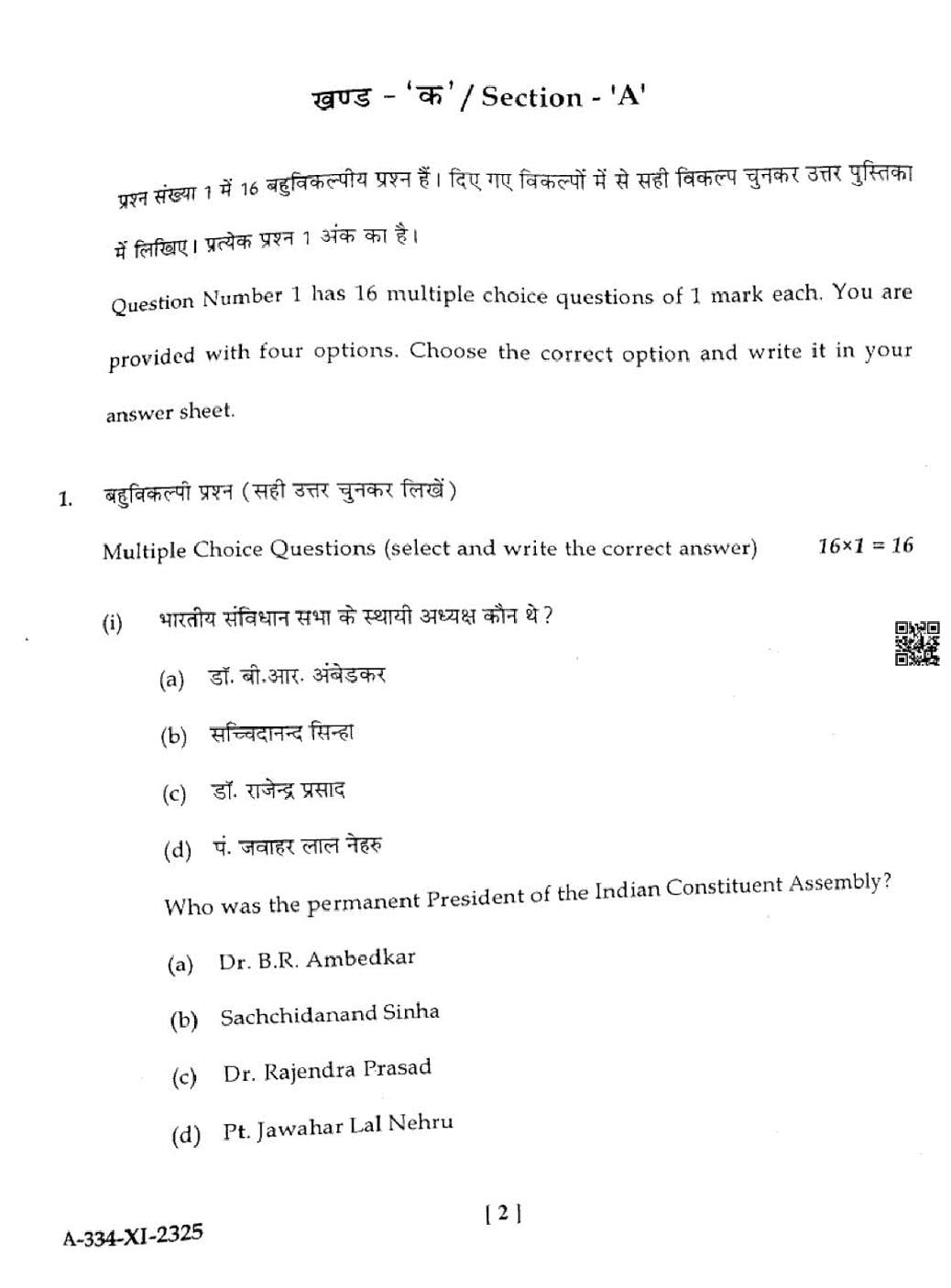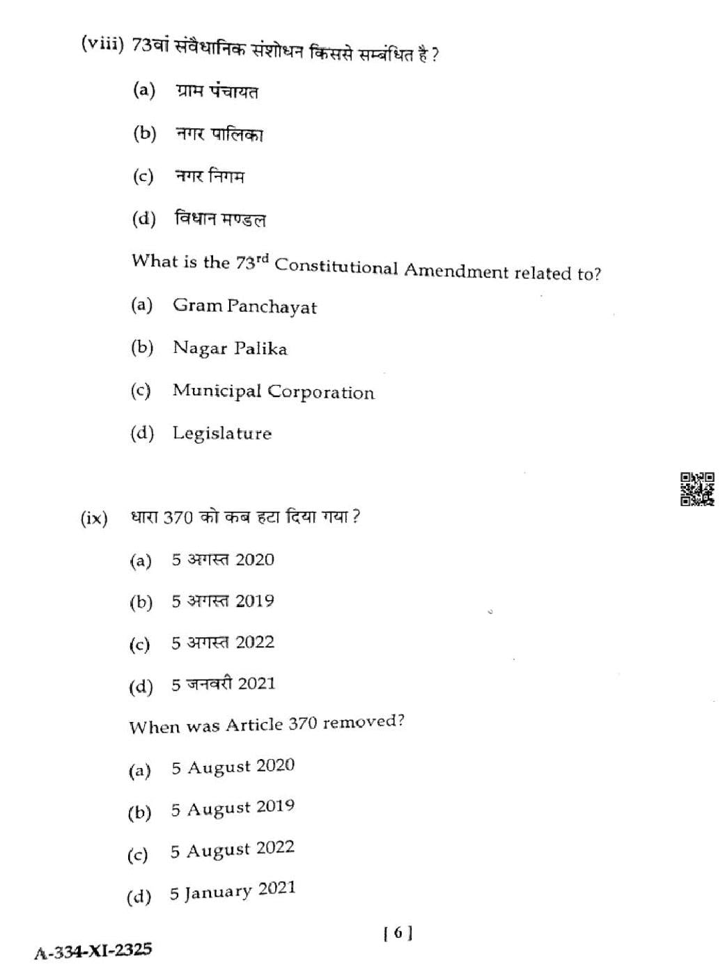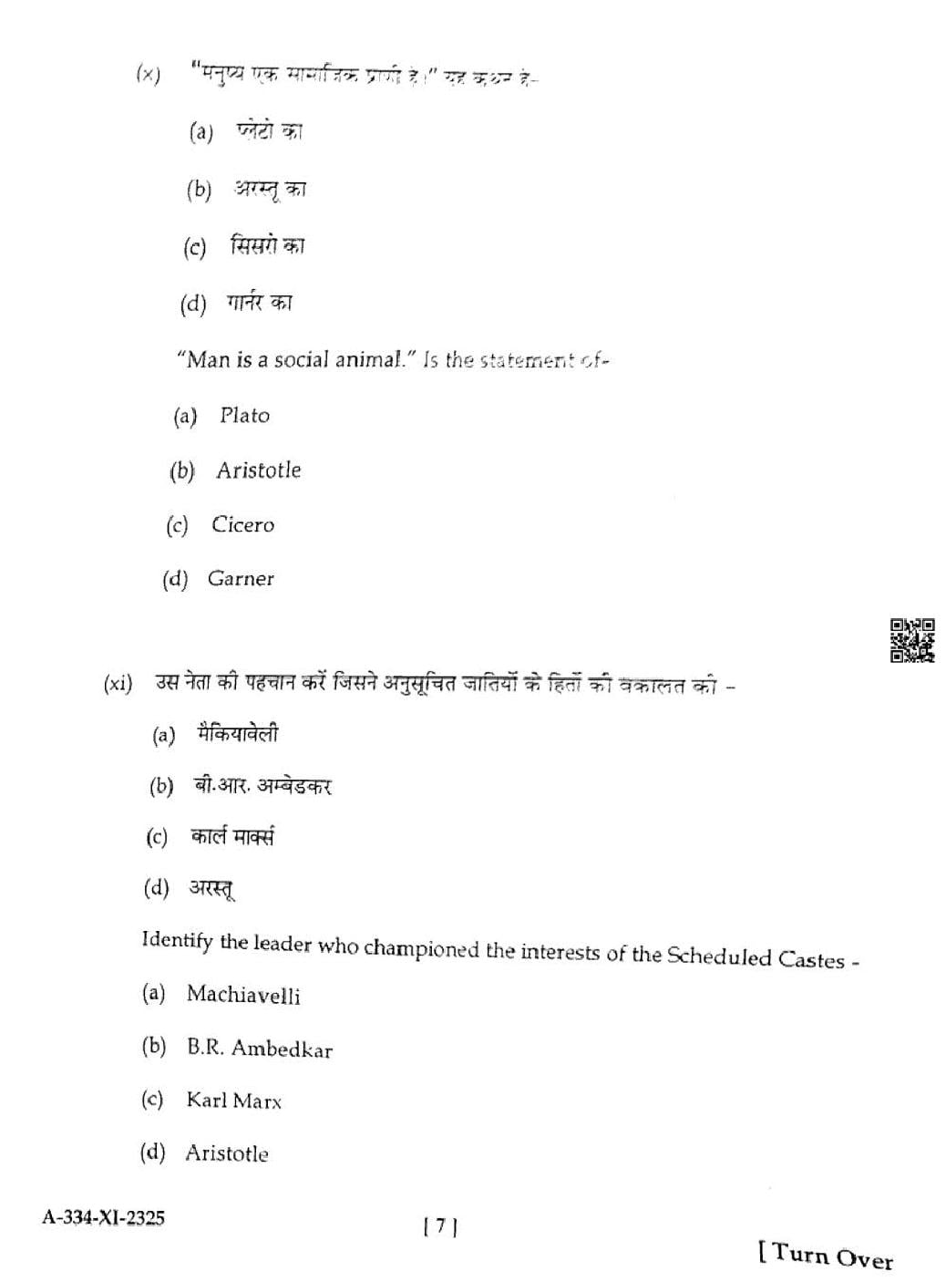 HP Board Class 11th Political Science Question Paper 2025