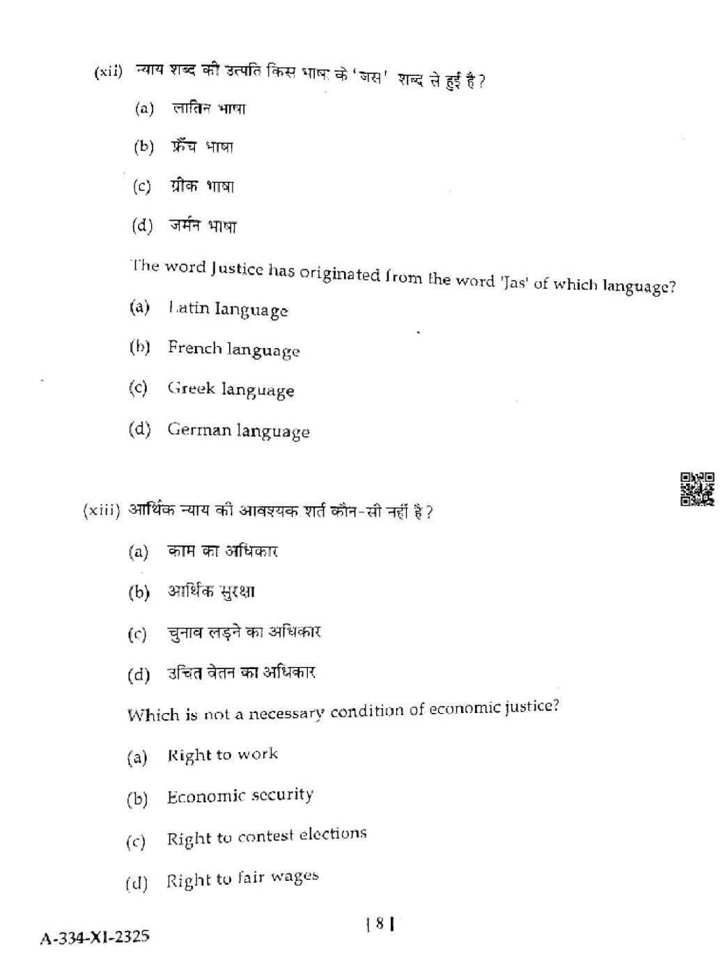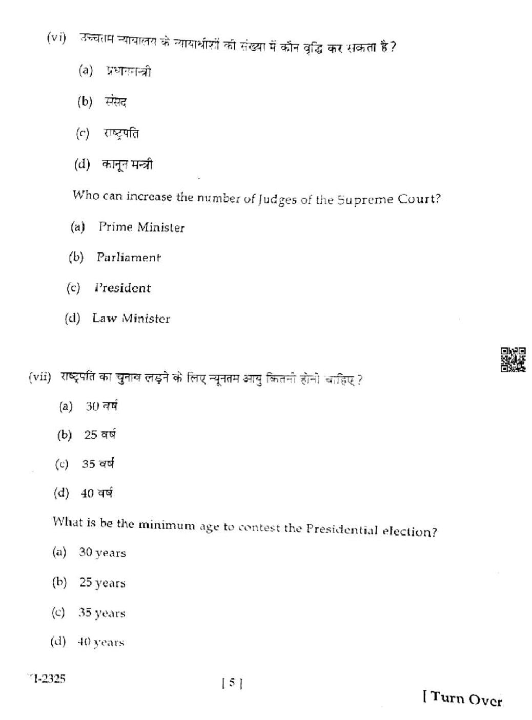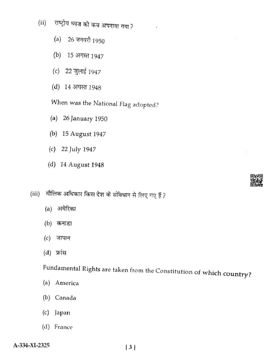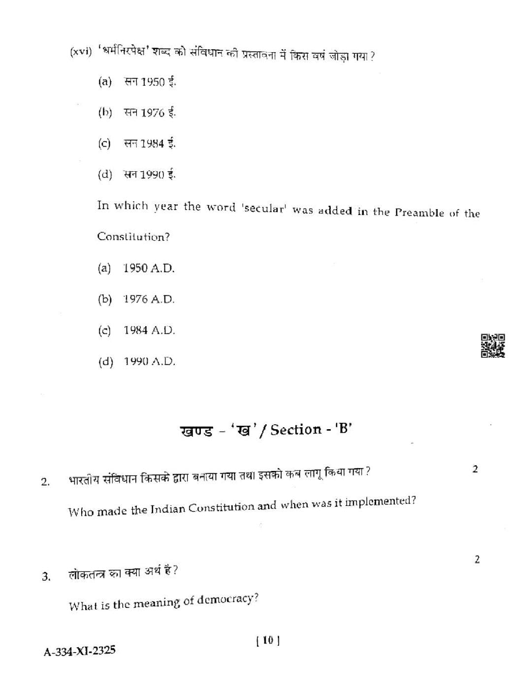 HP Board Class 11th Political Science Question Paper 2025
