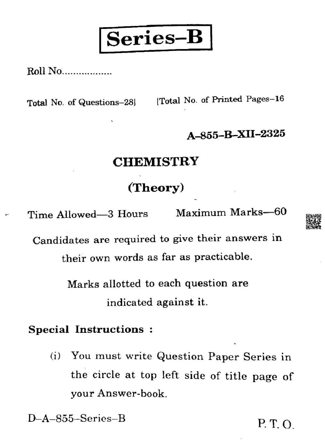 HP Board Class 12 Question Paper 2025 Chemistry View Download