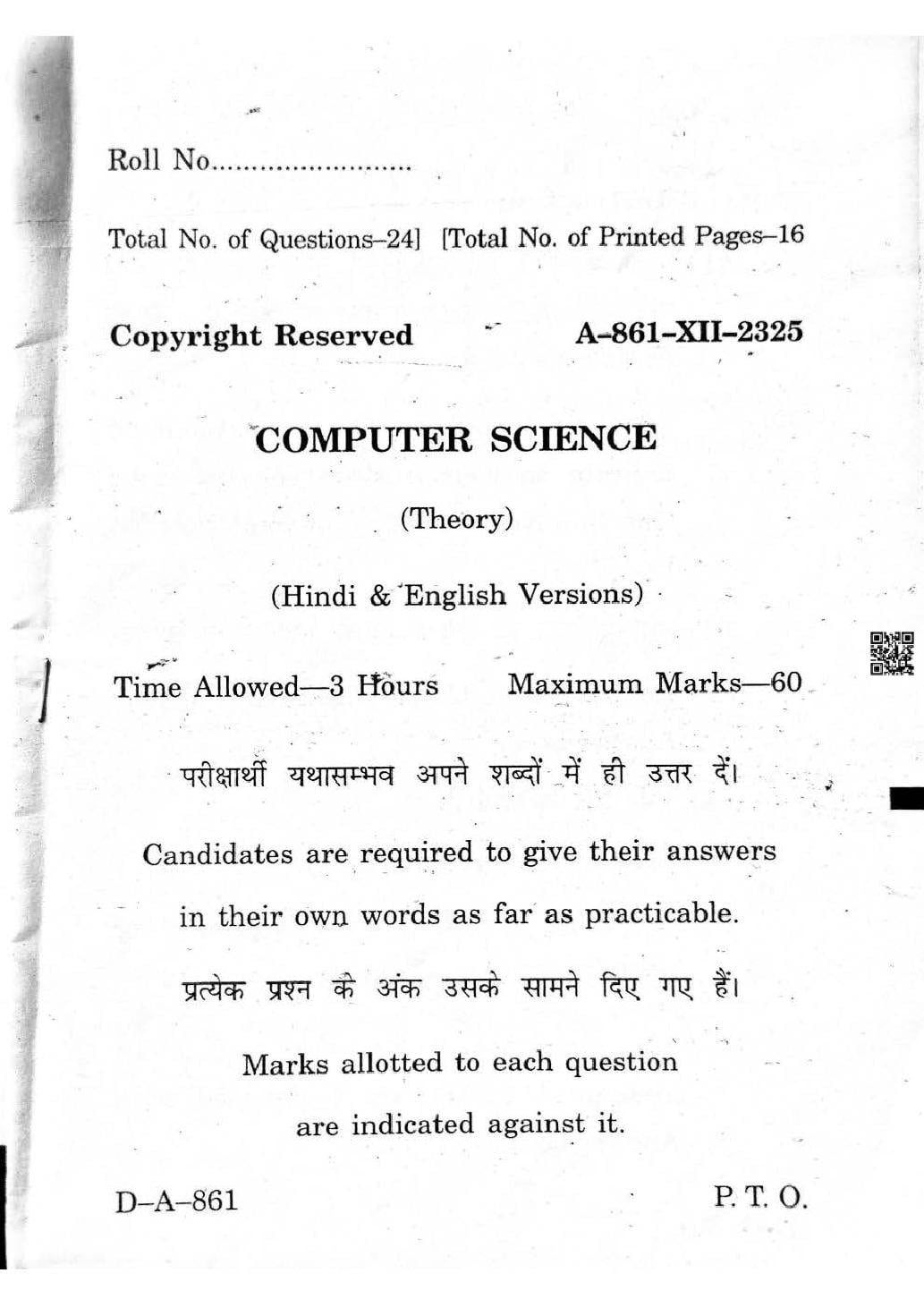 HP Board Class 12th Computer Science Question Paper 2024 PDF – Click Here to Download Question Paper PDF