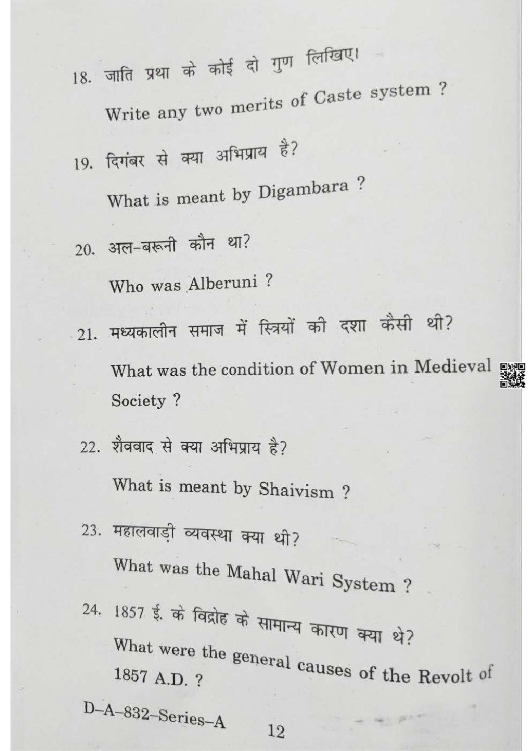 | Study Material Here | HP Board Previous Year Question Paper for Class 12 History |