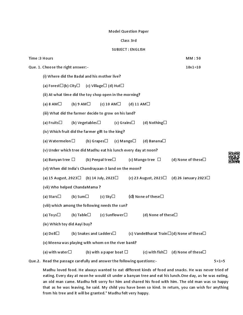 More HP Board Class 3 Model Question Papers