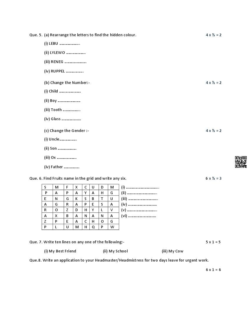 The latest available portable document format of the HPBOSE 3rd Class Sample Test Paper of English is as follows.