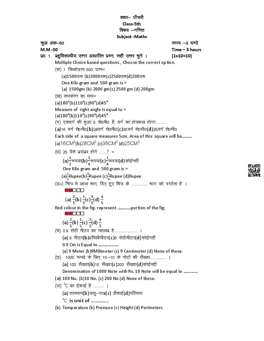 The latest available portable document format of the HPBOSE 5th Class Sample Test Paper of Maths is as follows.