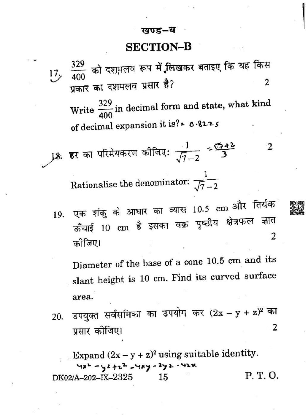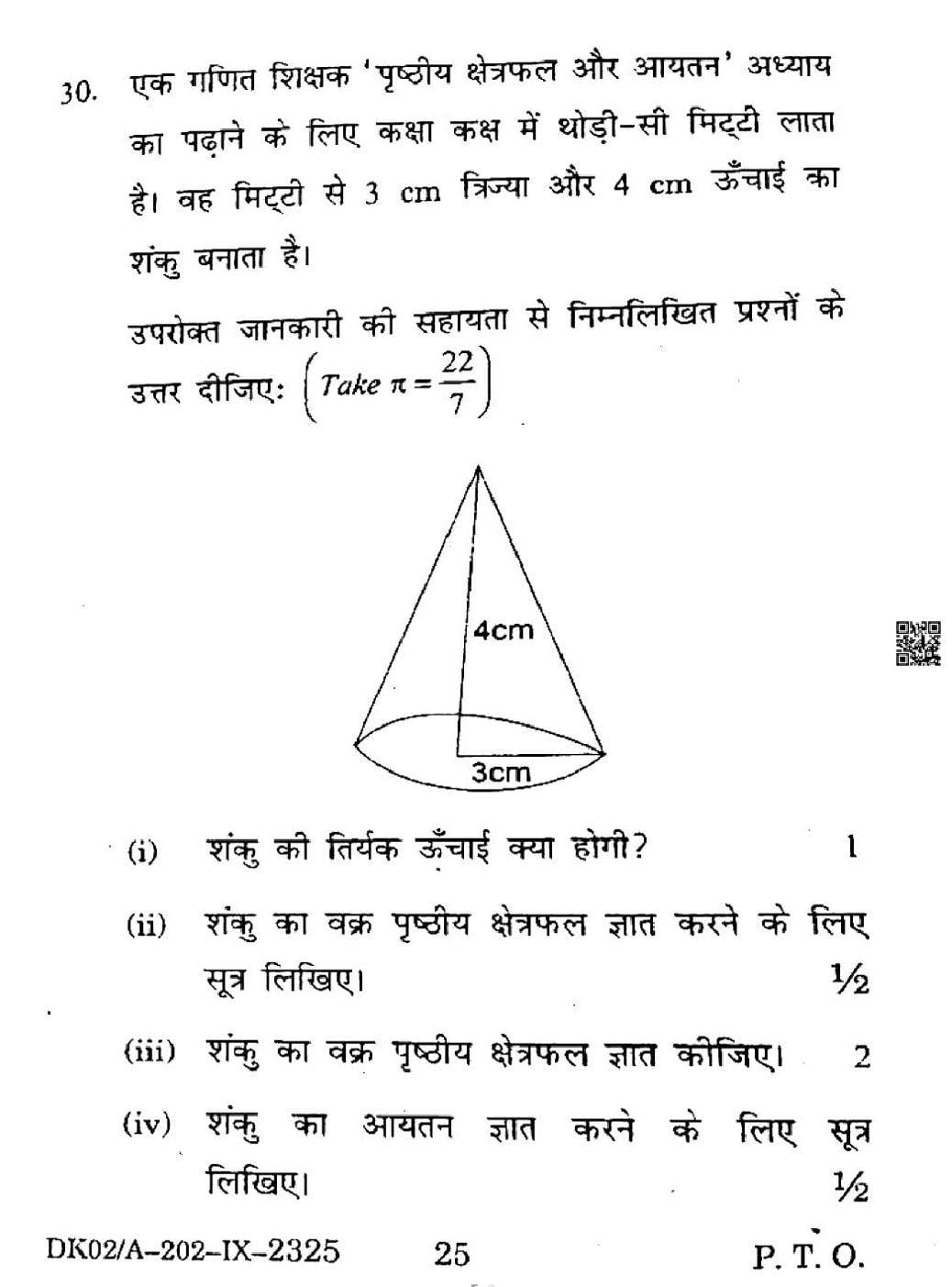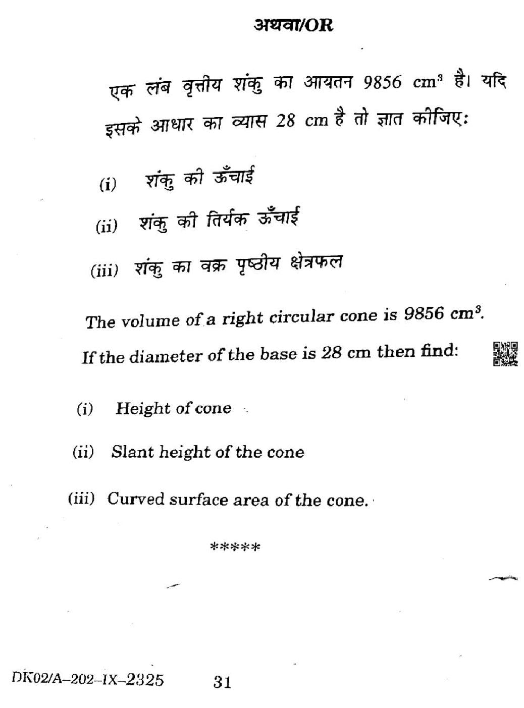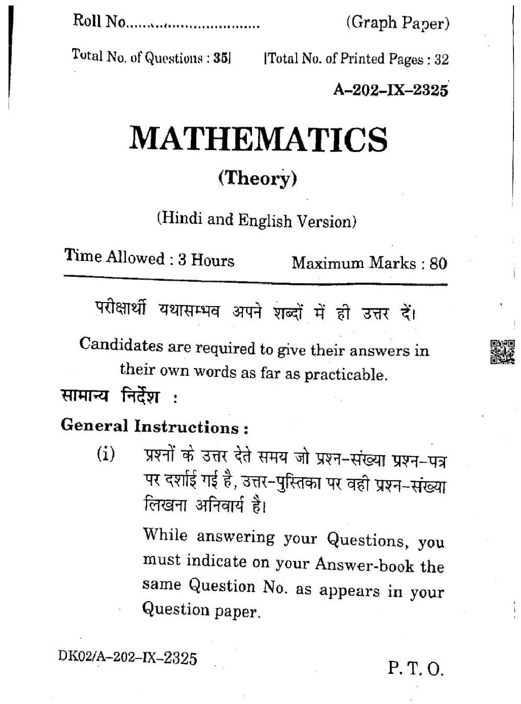 HP Board Class 9 Question Paper 2025 Mathematics View Download