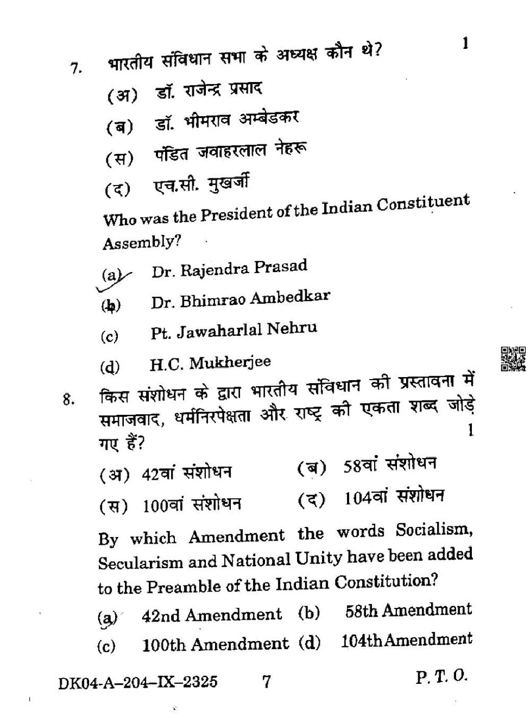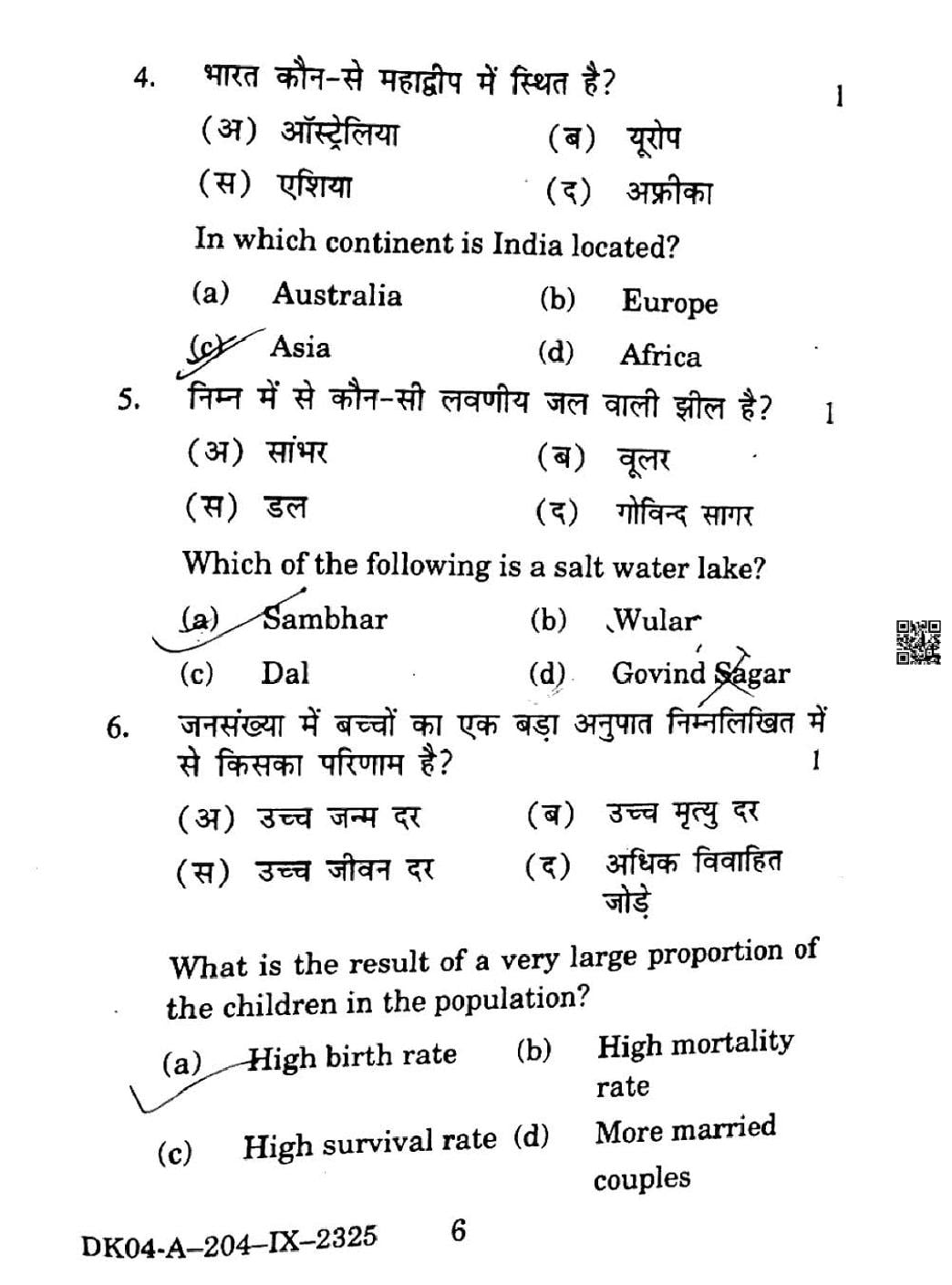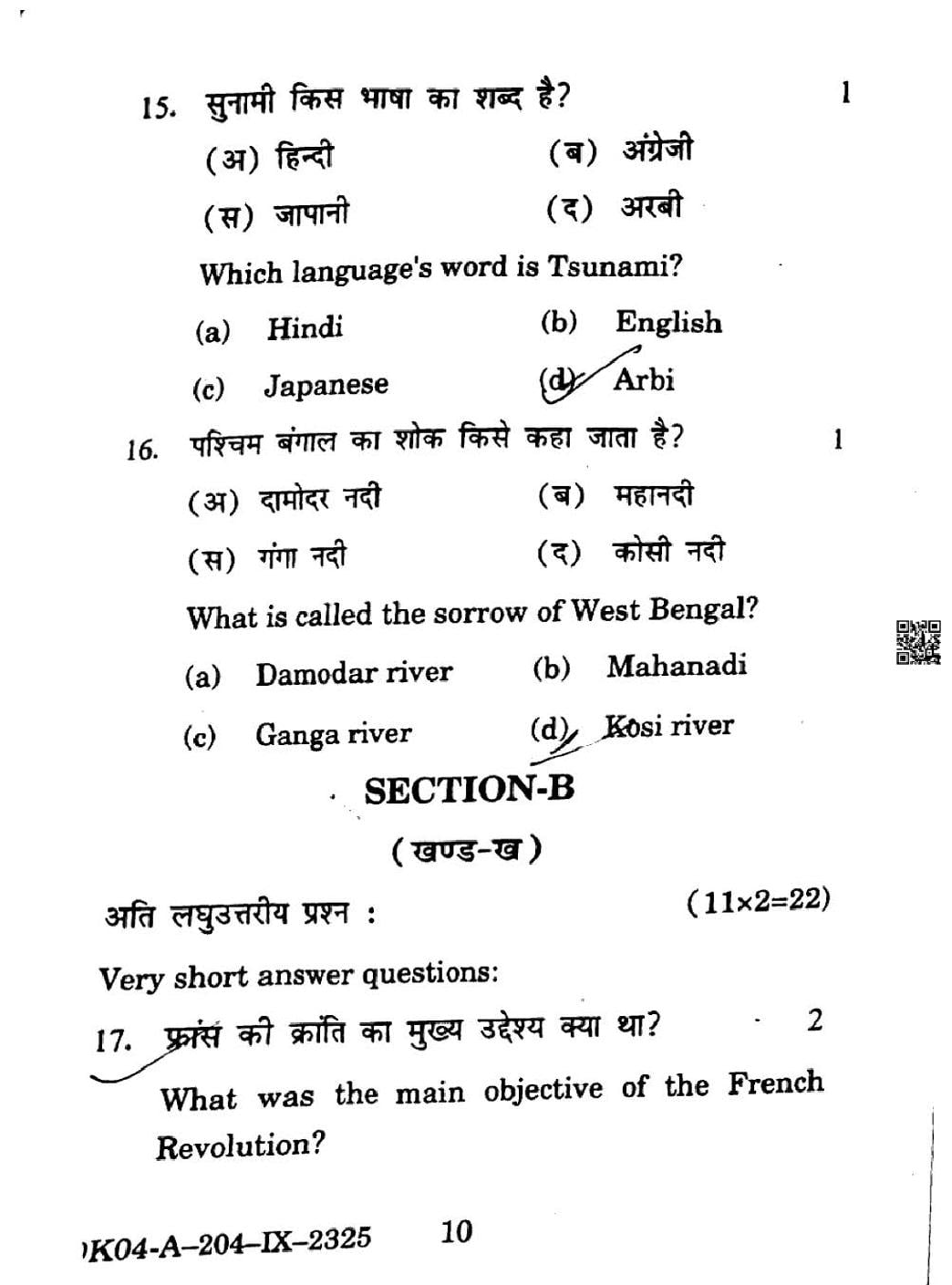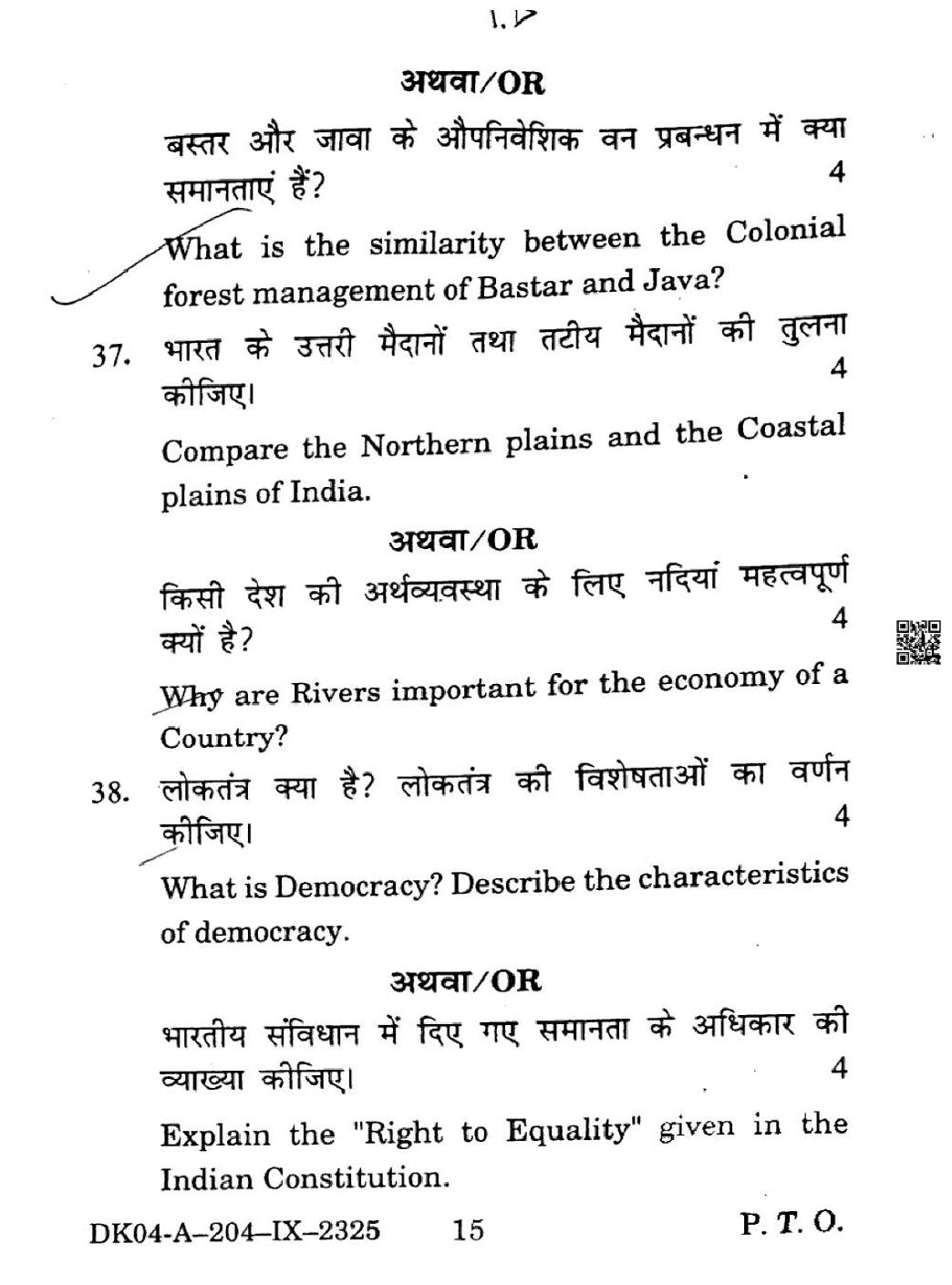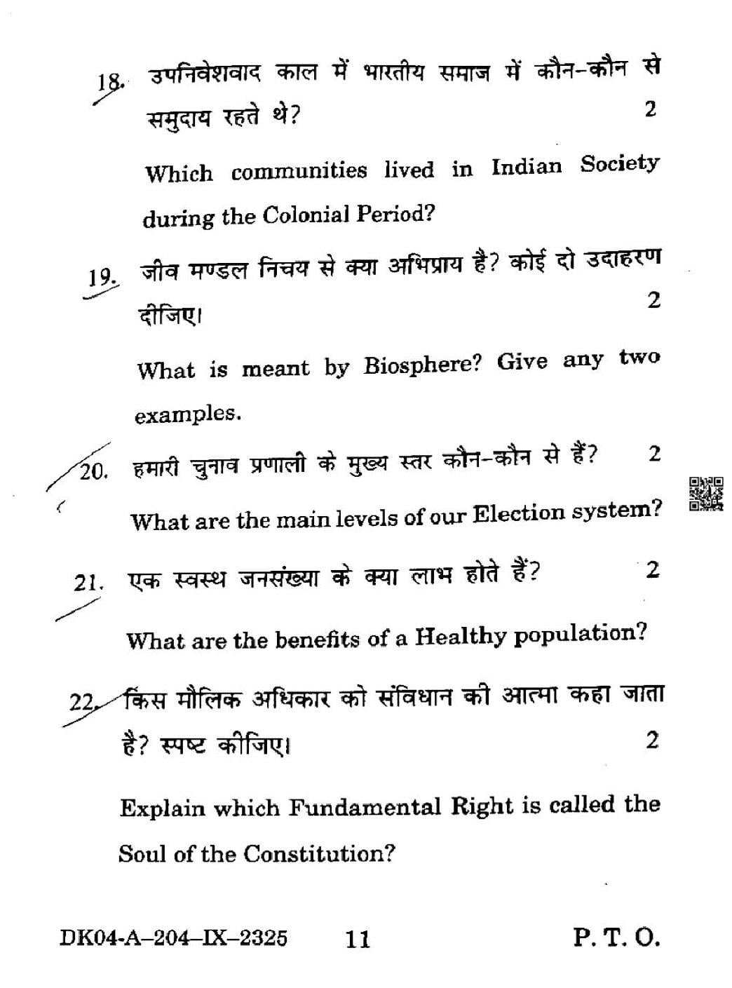 HP Board Class 9th Social Science Question Paper 2025 PDF