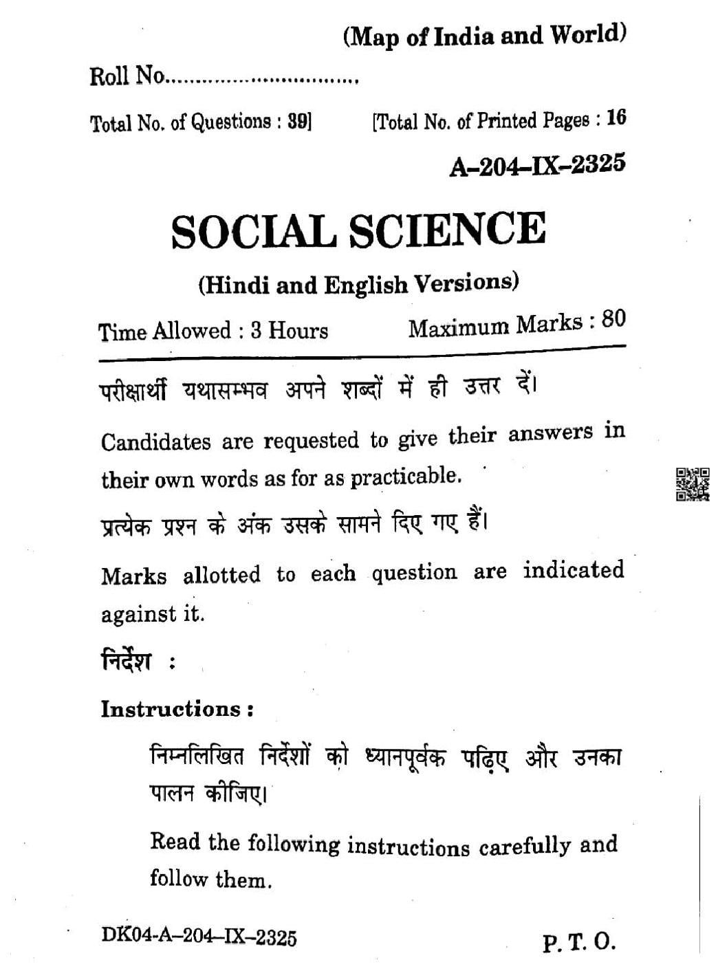 HP Board Class 9th Social Science Question Paper 2024 PDF – Click Here to Download Question Paper PDF