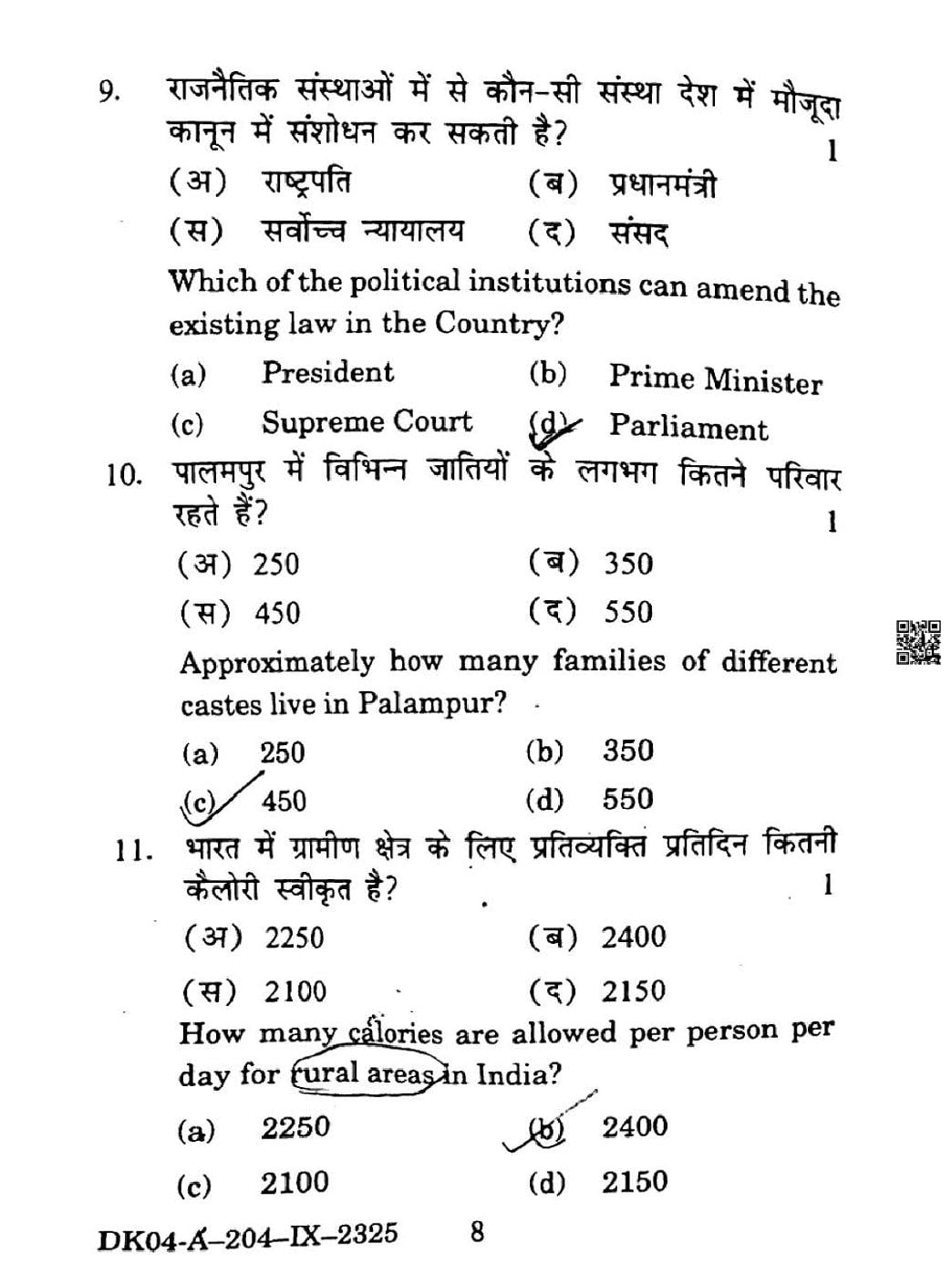 HP Board Class 9 Question Paper 2025 Social Science View Download