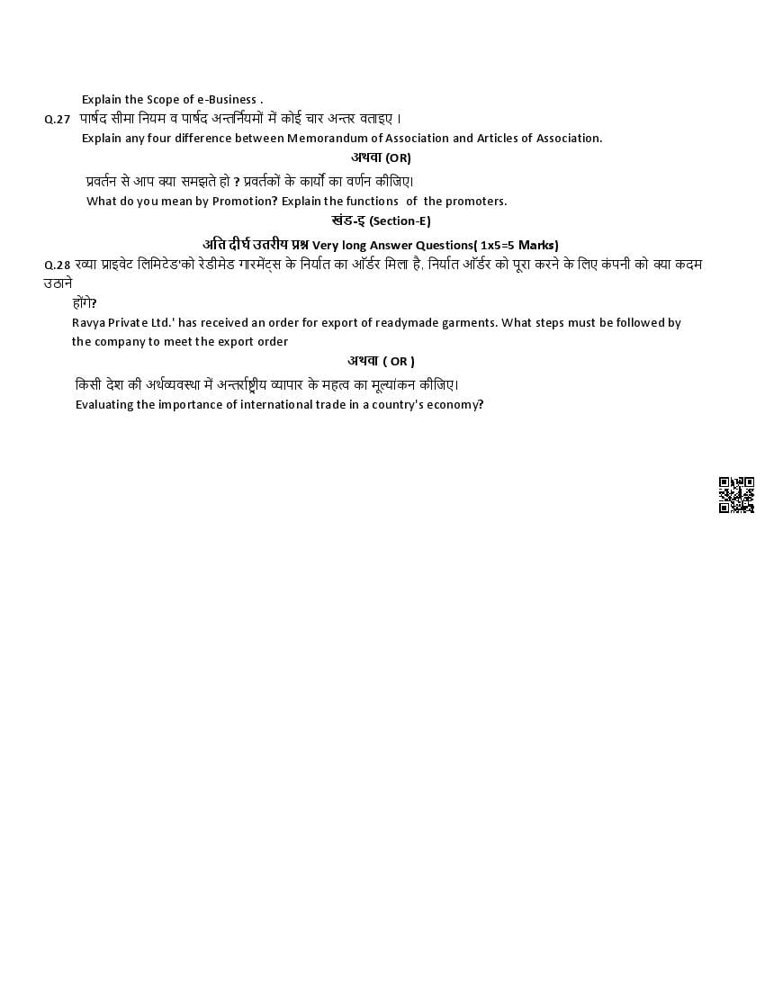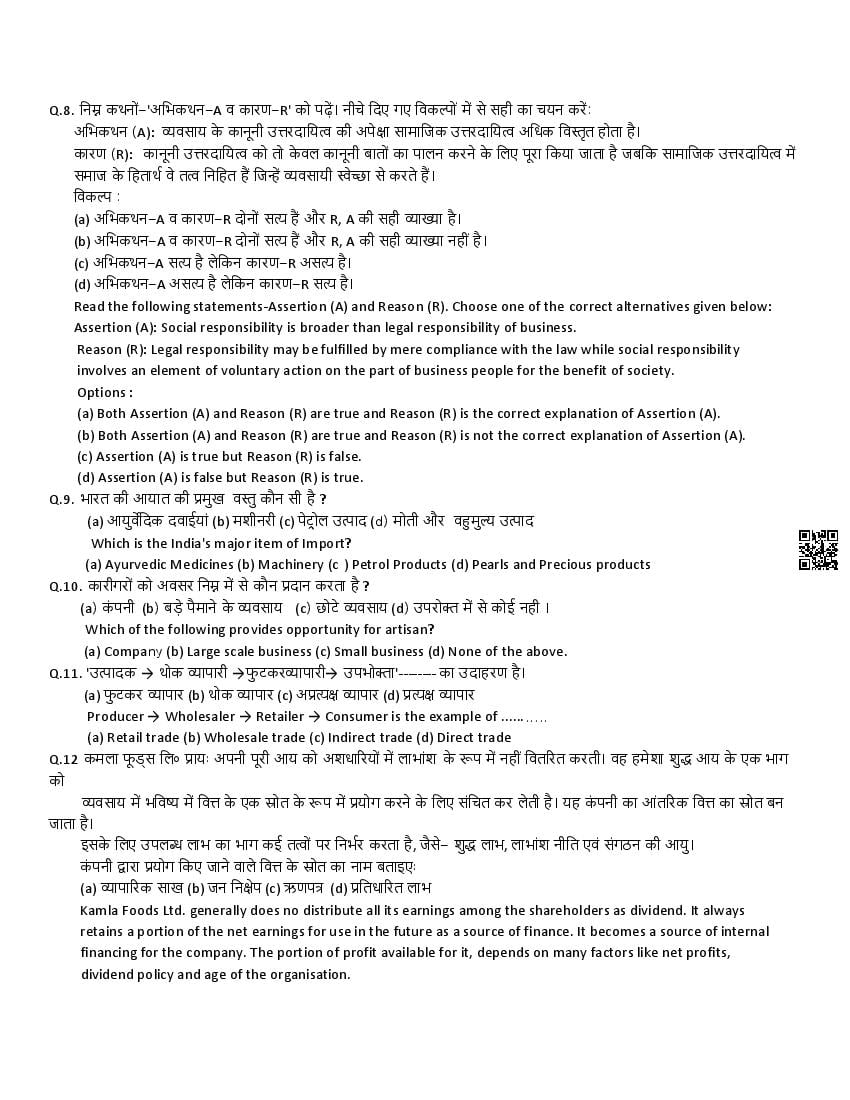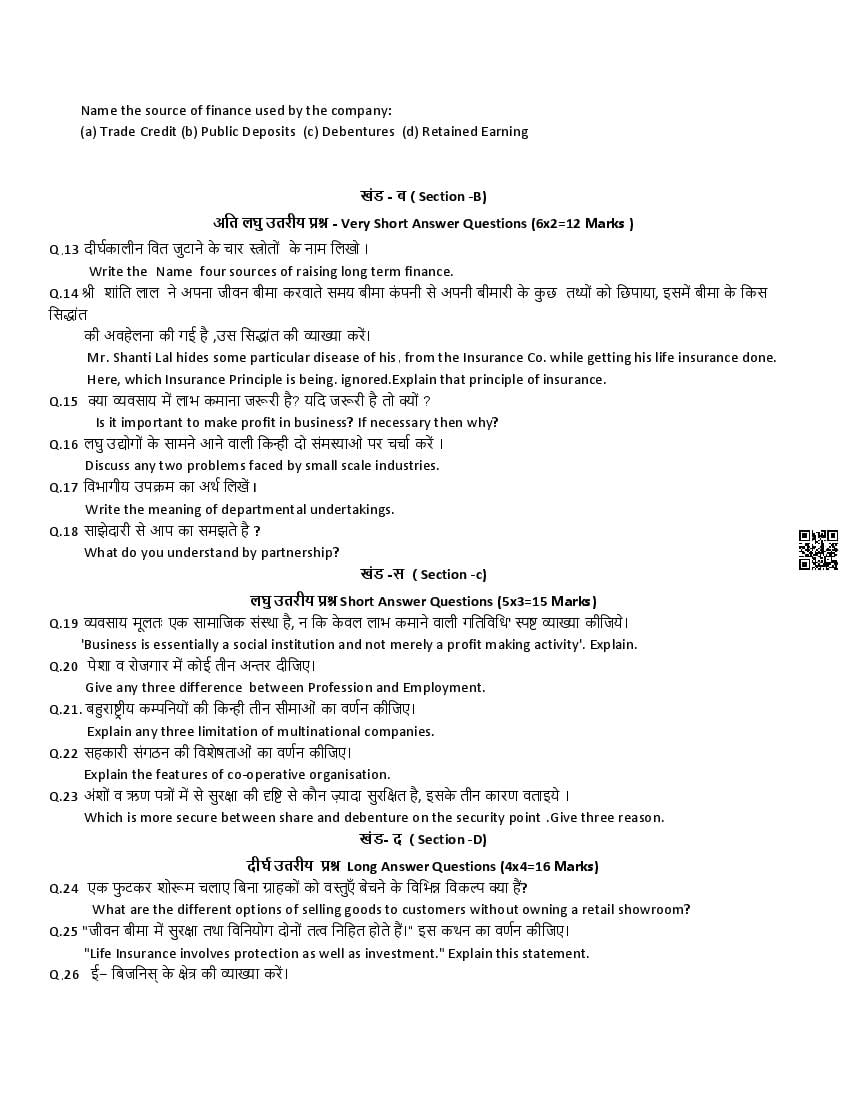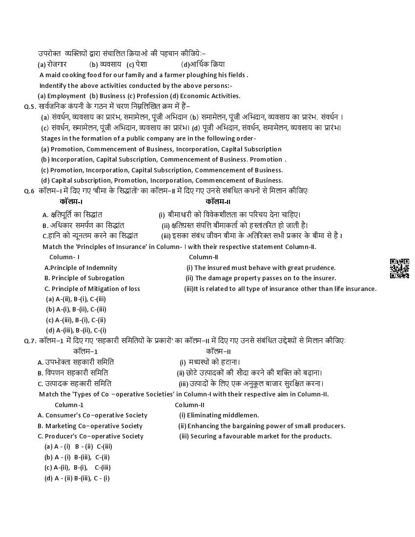 The latest available portable document format of the HPBOSE 11th Class Sample Test Paper of Business Studies is as follows.