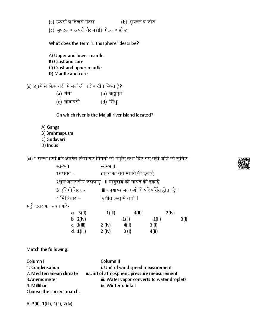 HP Board 11th Class Model Question Paper 2026 Geography View Download