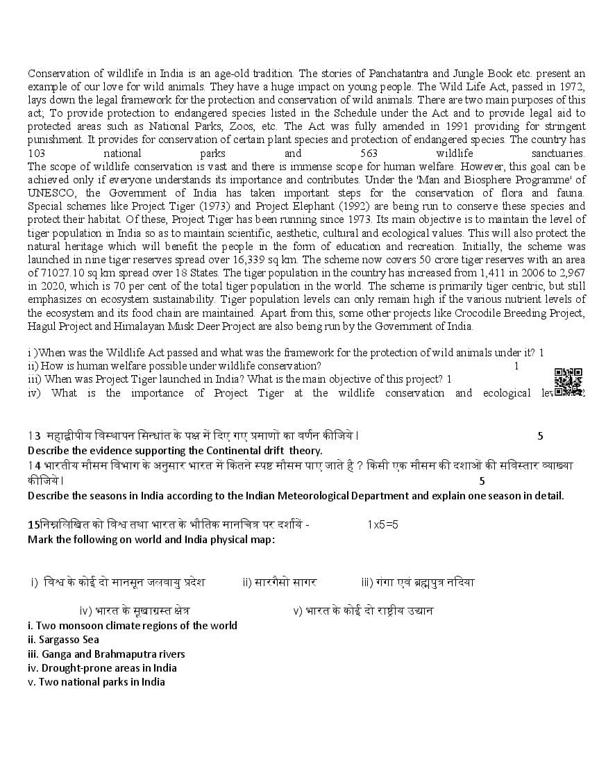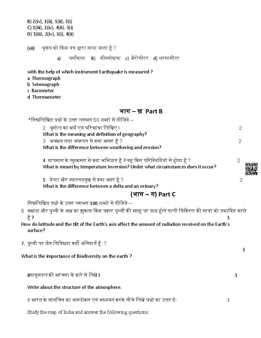 The latest available portable document format of the HPBOSE 11th Class Sample Test Paper of Geography is as follows.