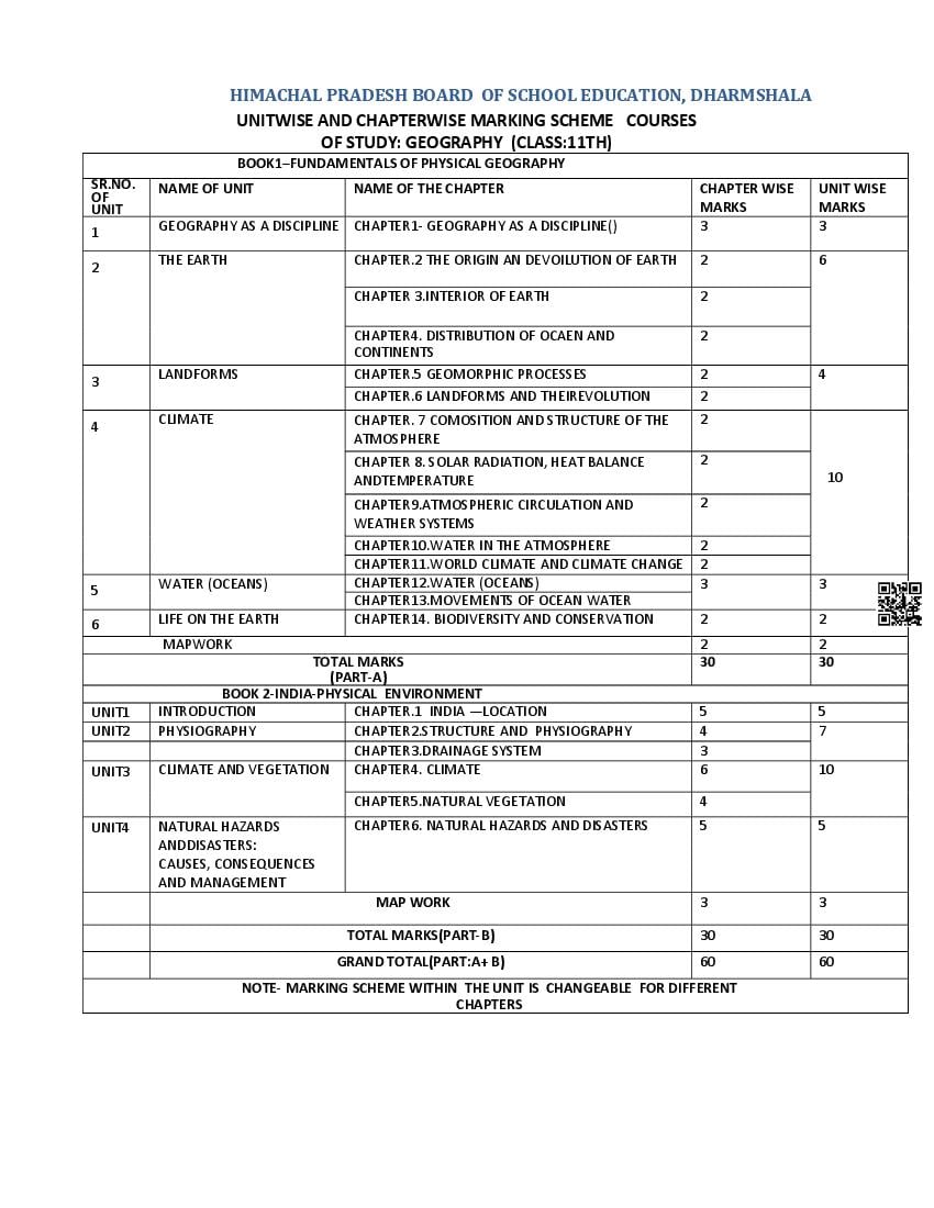 | Syllabus On Which HP Board Class 11 Geography Model Paper is Based | HP Board Syllabus |