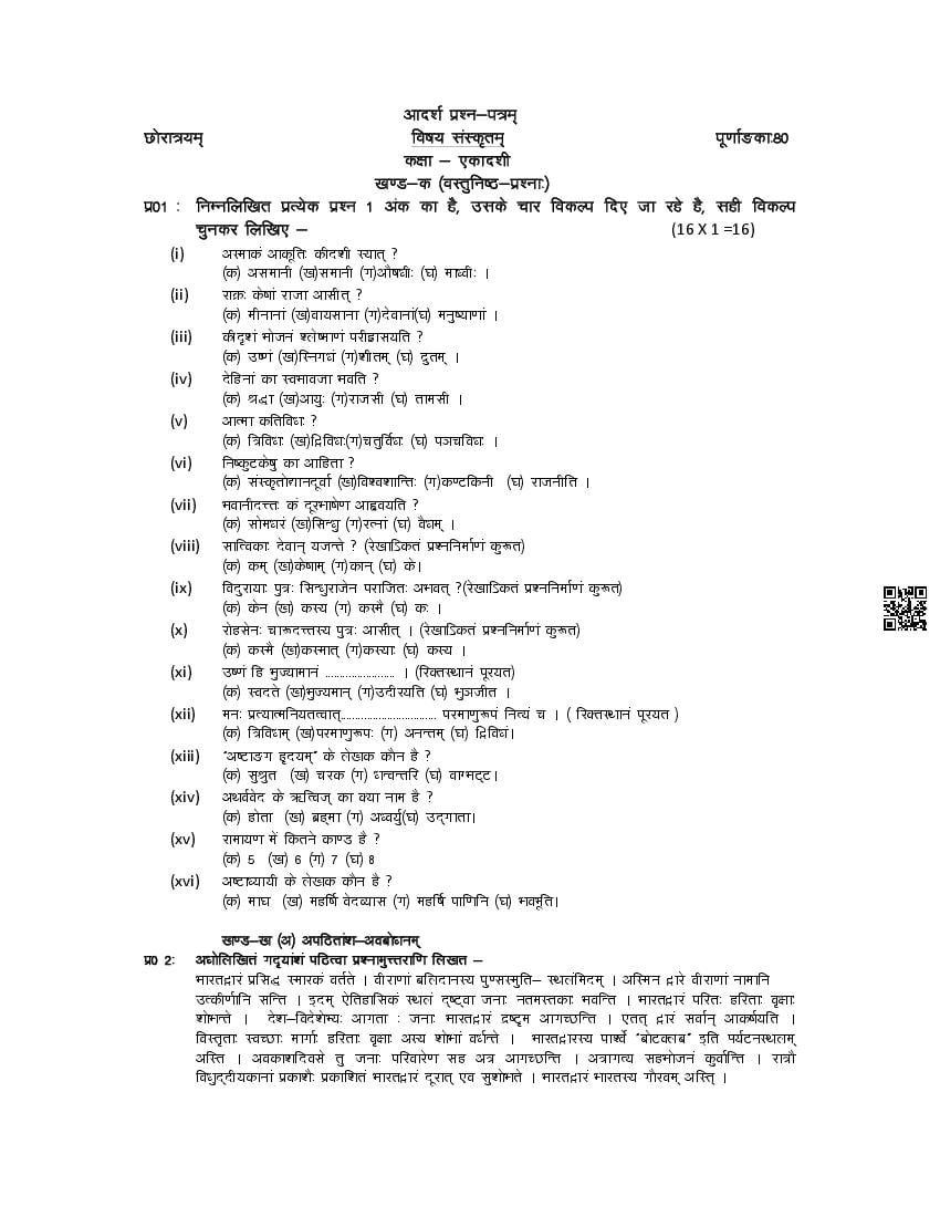 HP Board 11th Class Model Question Paper 2025 Sanskrit View Download