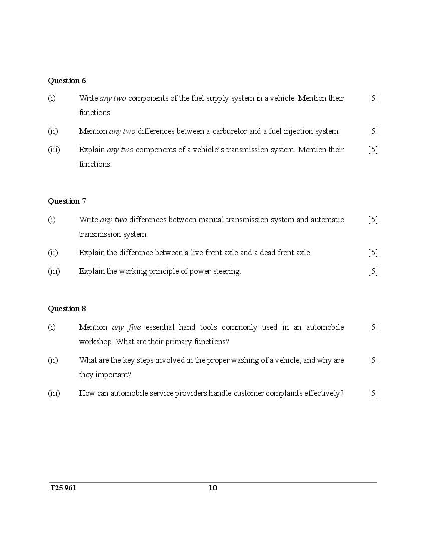 ICSE Class 10 Question Paper 2025 Auto Service Technician View Download