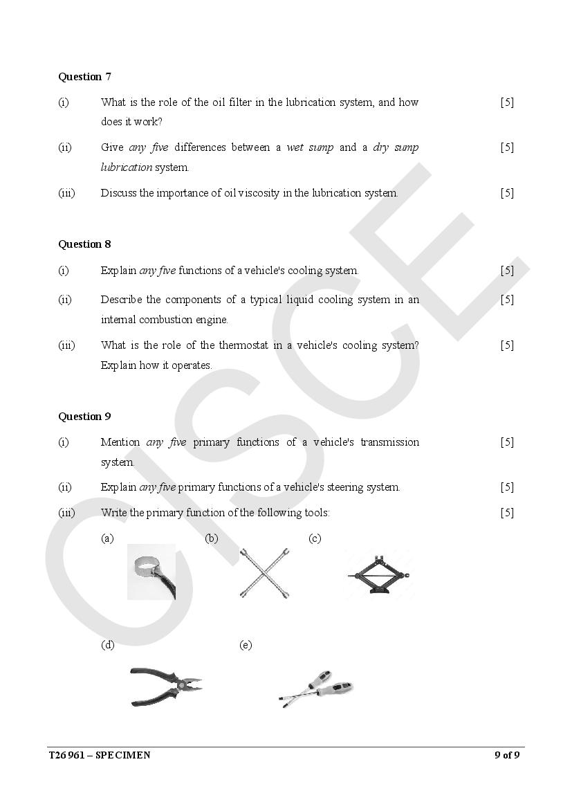 | Study Material Here | CISCE Board Specimen Paper of Class 10 Auto Service Technician |