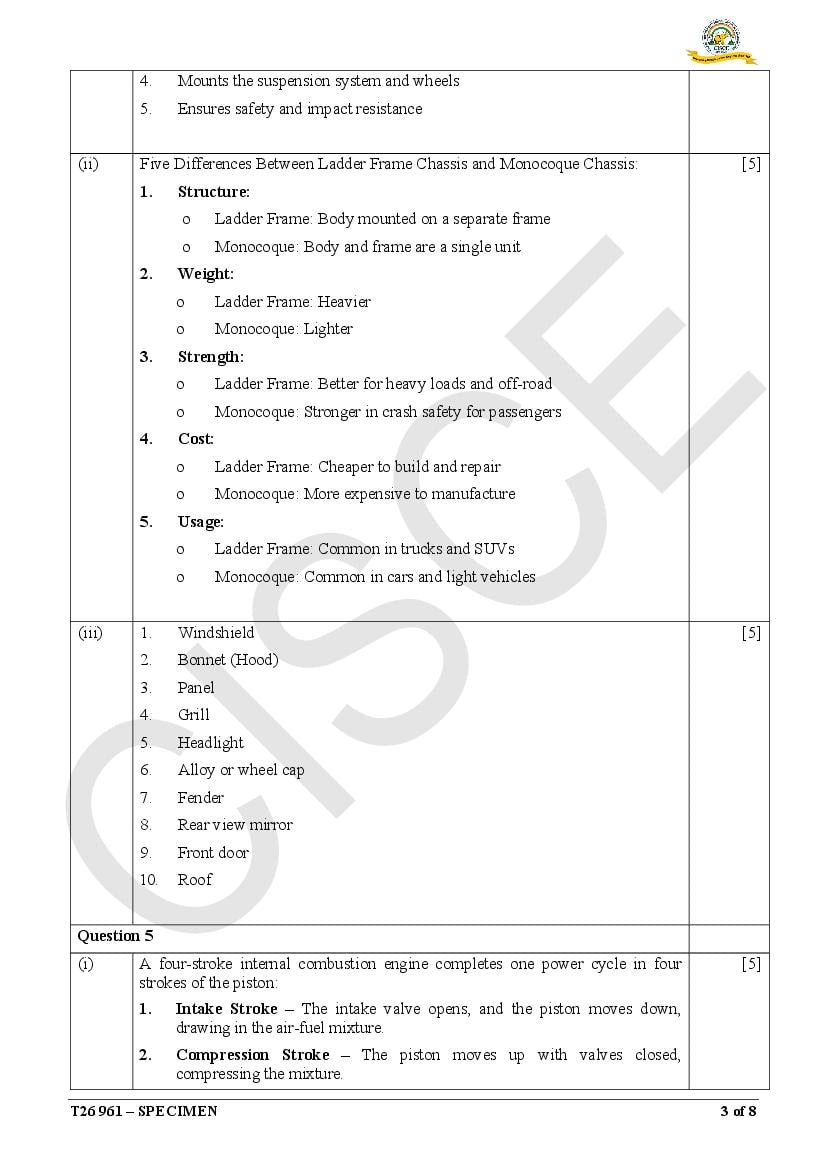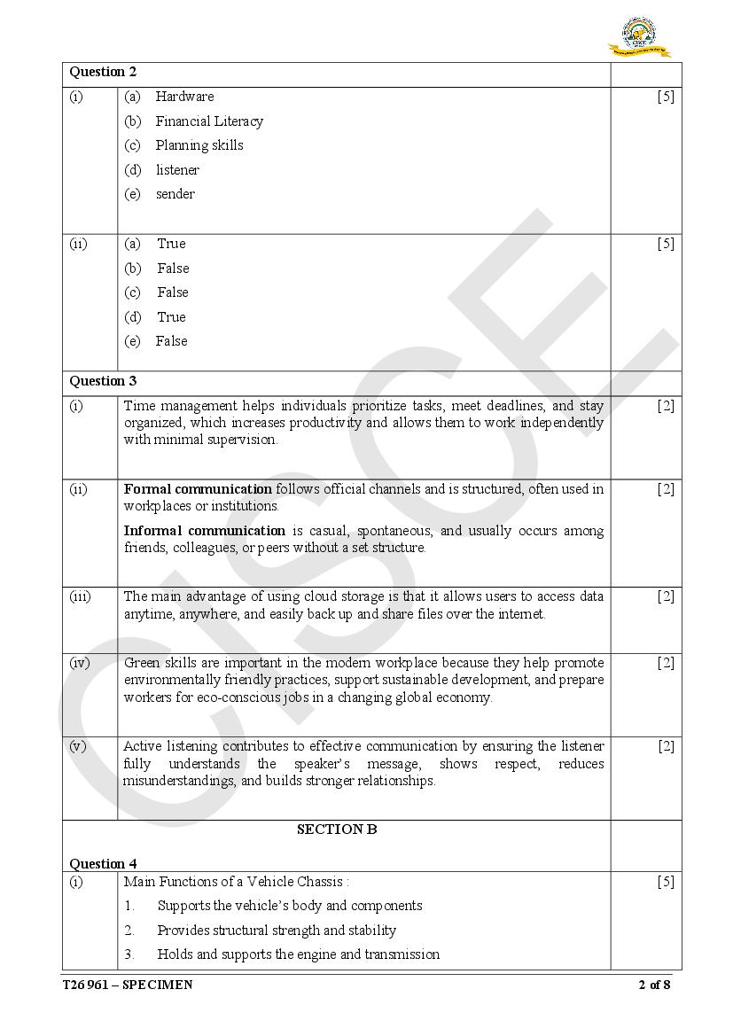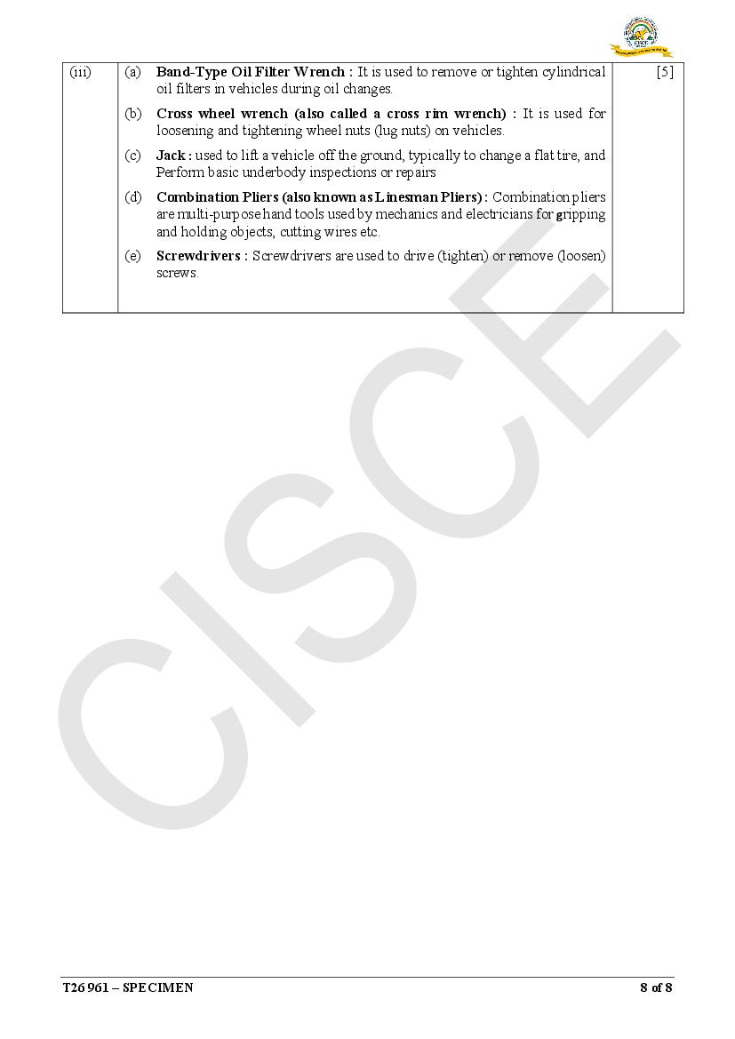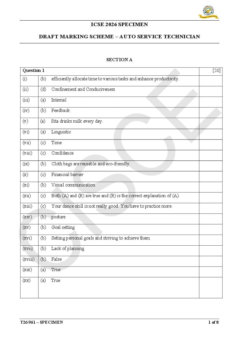 The specimen paper for ICSE 2026, for Auto Service Technician is now available. The direct link to download PDF of this ICSE specimen paper 2026 is as follows.