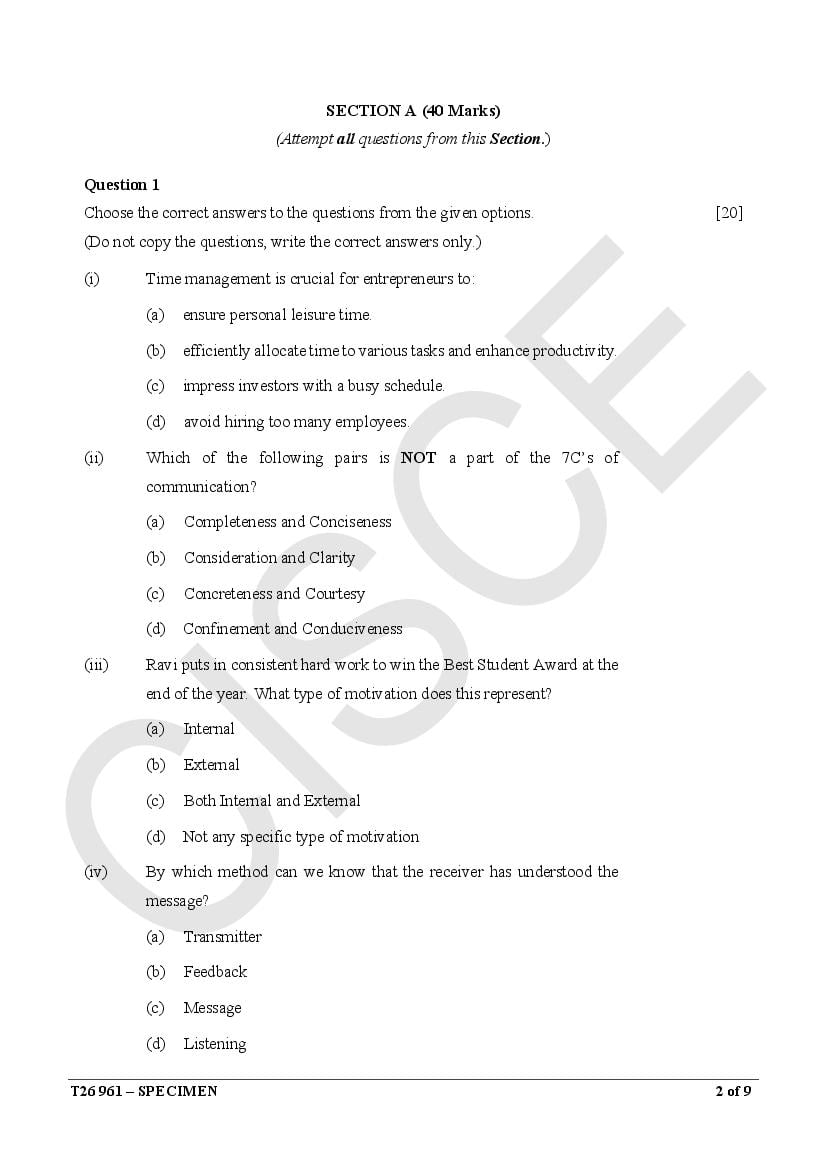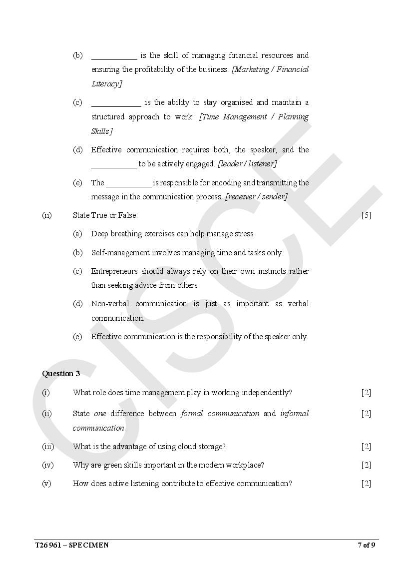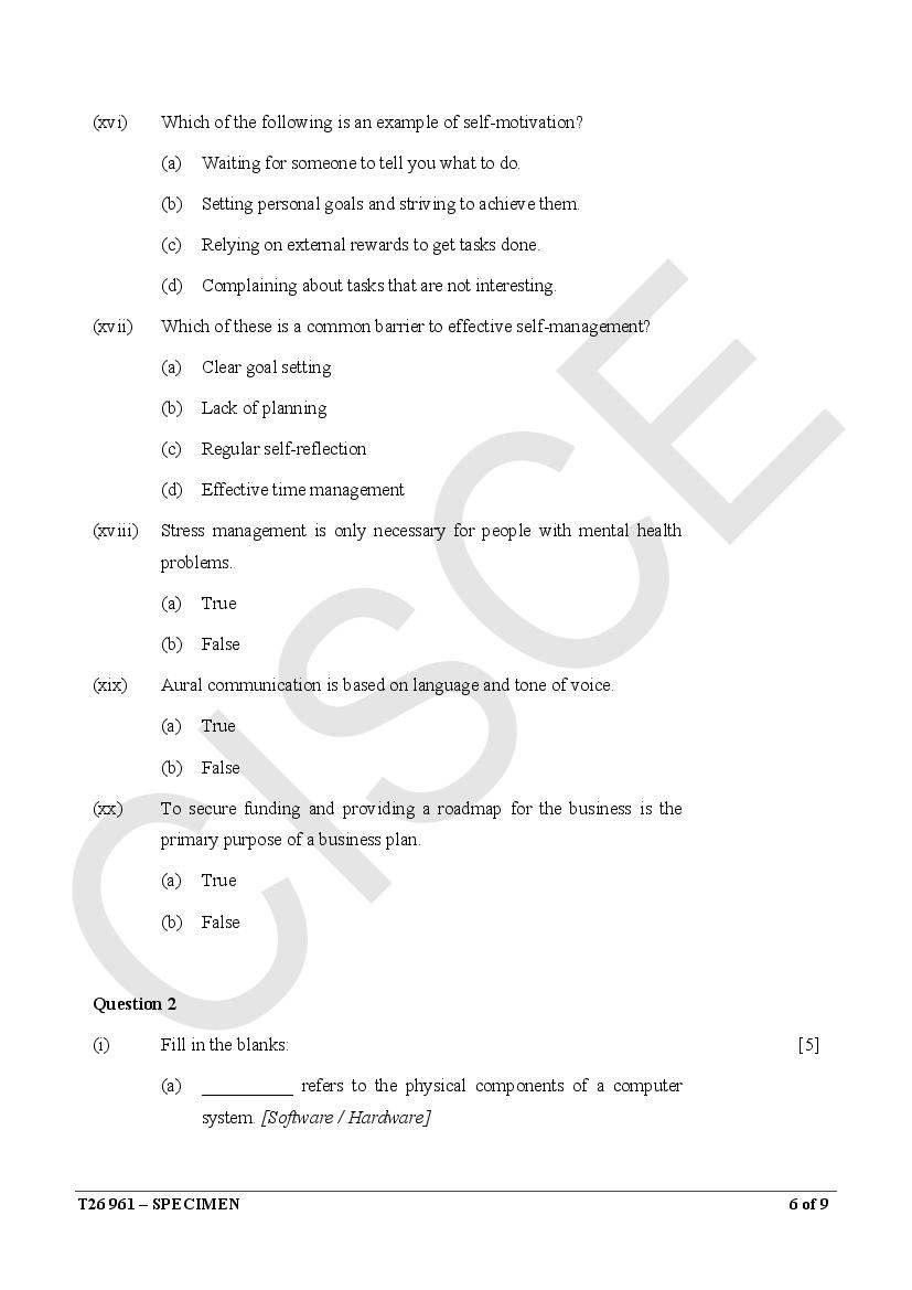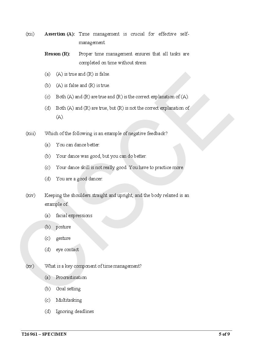 The specimen paper for ICSE 2026, for Auto Service Technician is now available. The direct link to download PDF of this ICSE specimen paper 2026 is as follows.