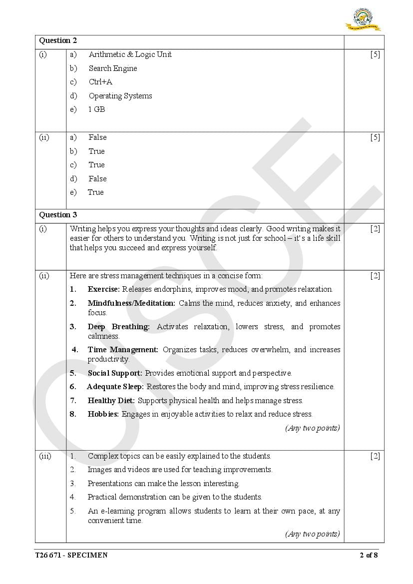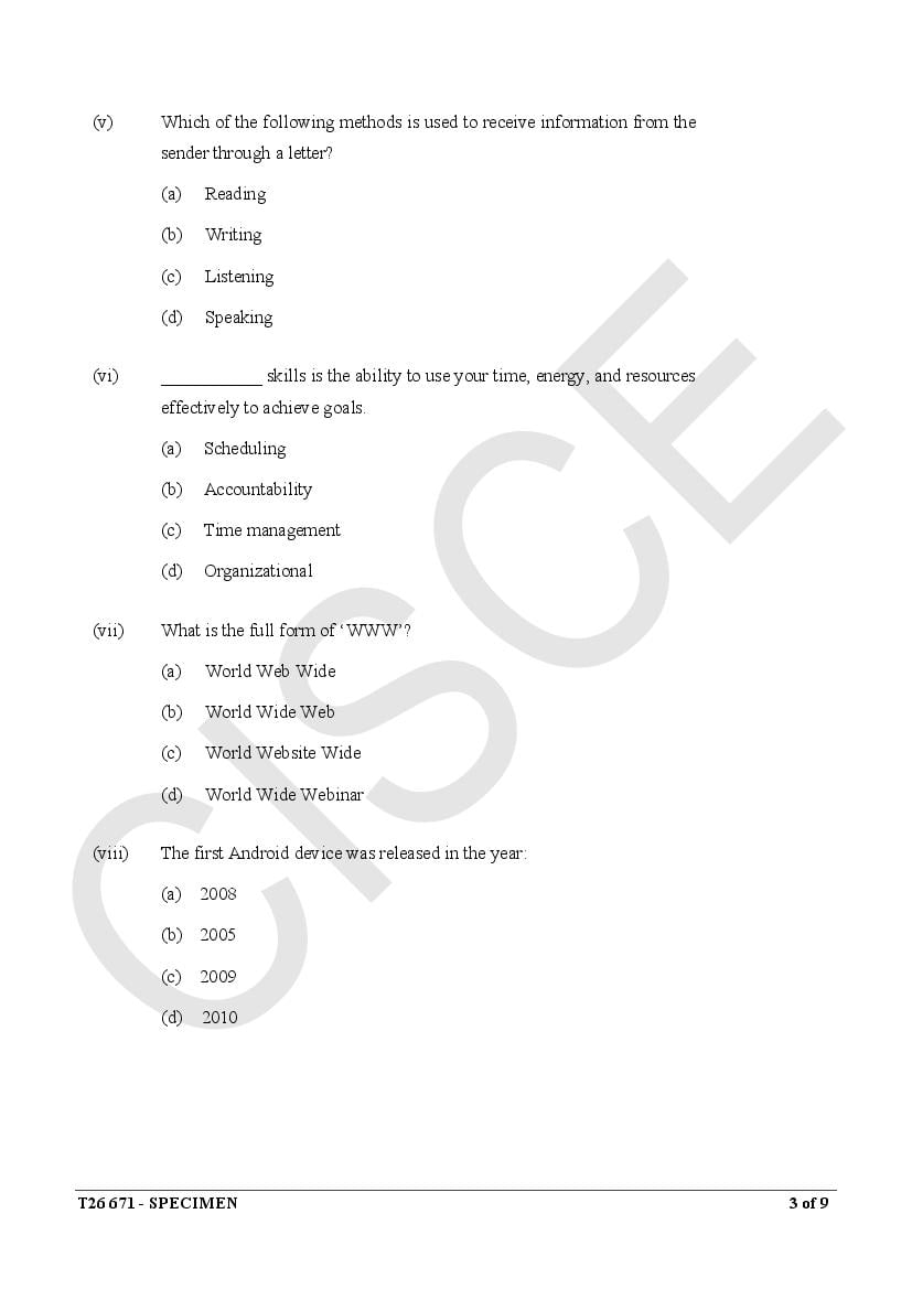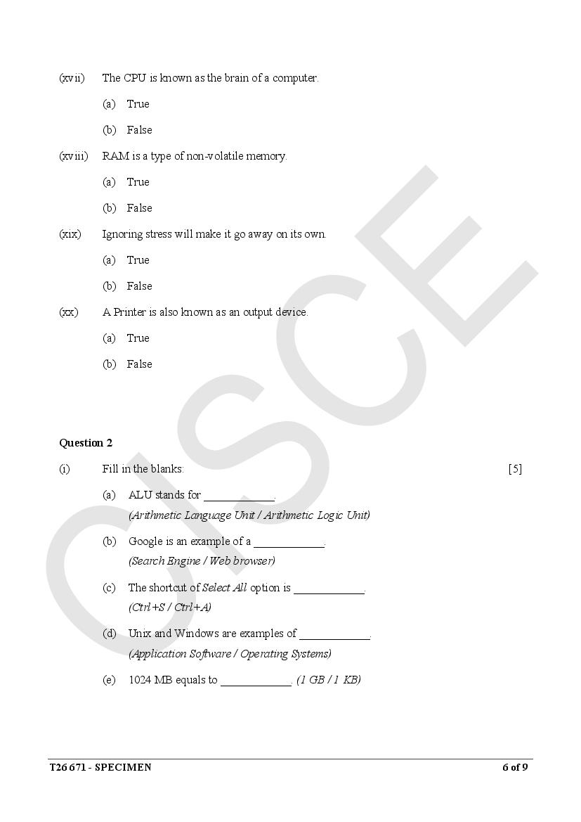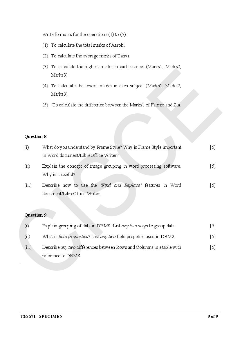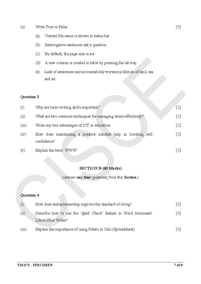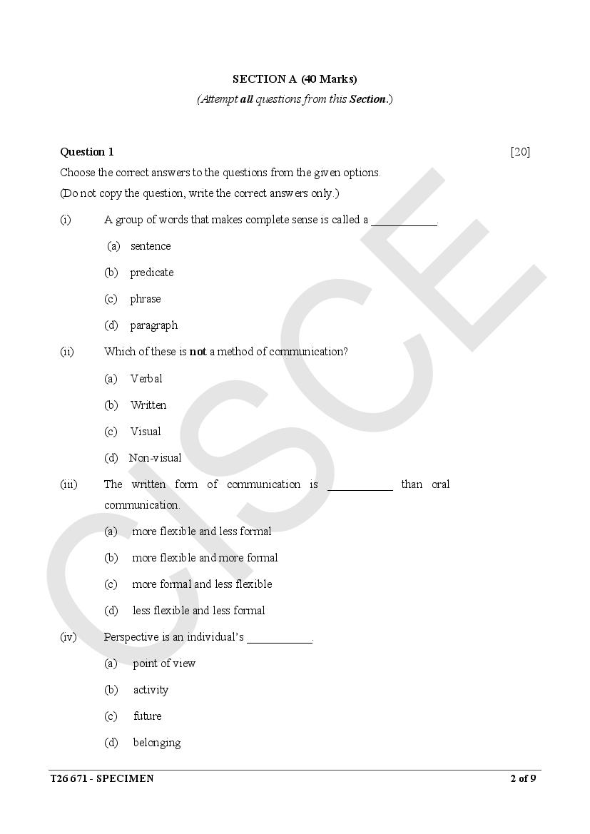 ICSE Specimen Papers