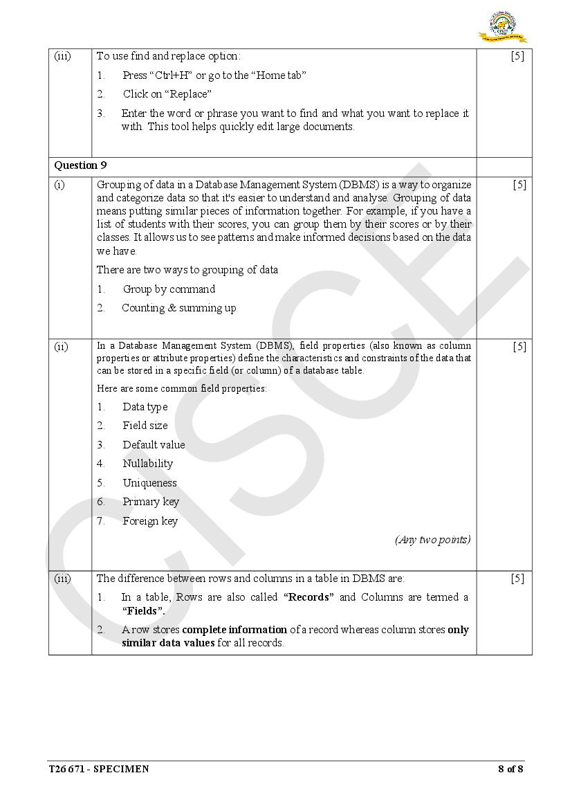 Are you looking for specimen paper of Basic Data Entry Operator class 10 ICSE 2026 solved?