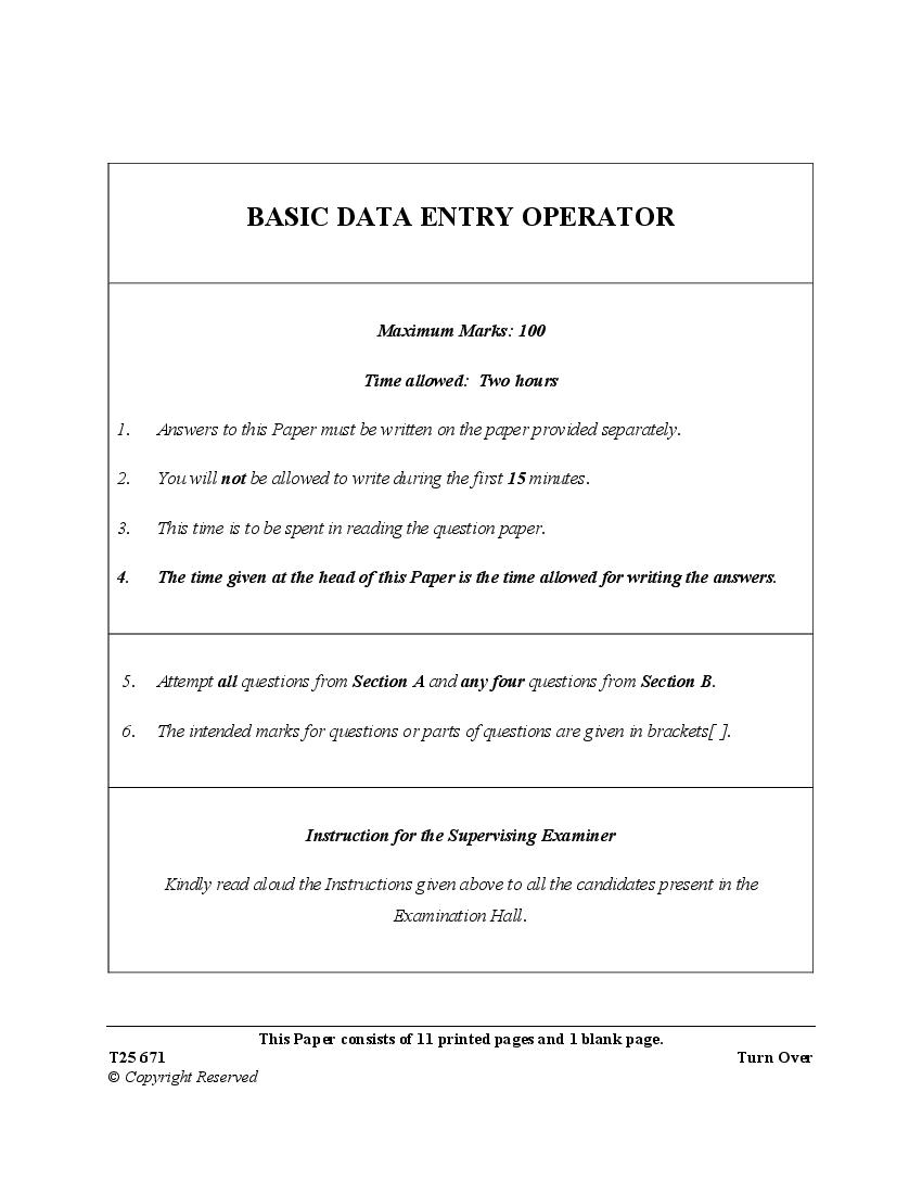 | Resources Here | CISCE Previous Year Question Papers of Class 10 Basic Data Entry Operator |