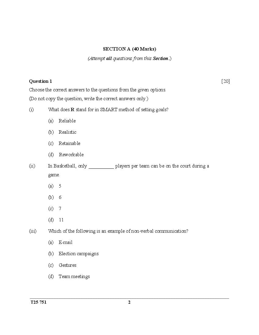 ICSE Class 10 Question Paper 2025 Early Years Physical Activity Facilitator View Download