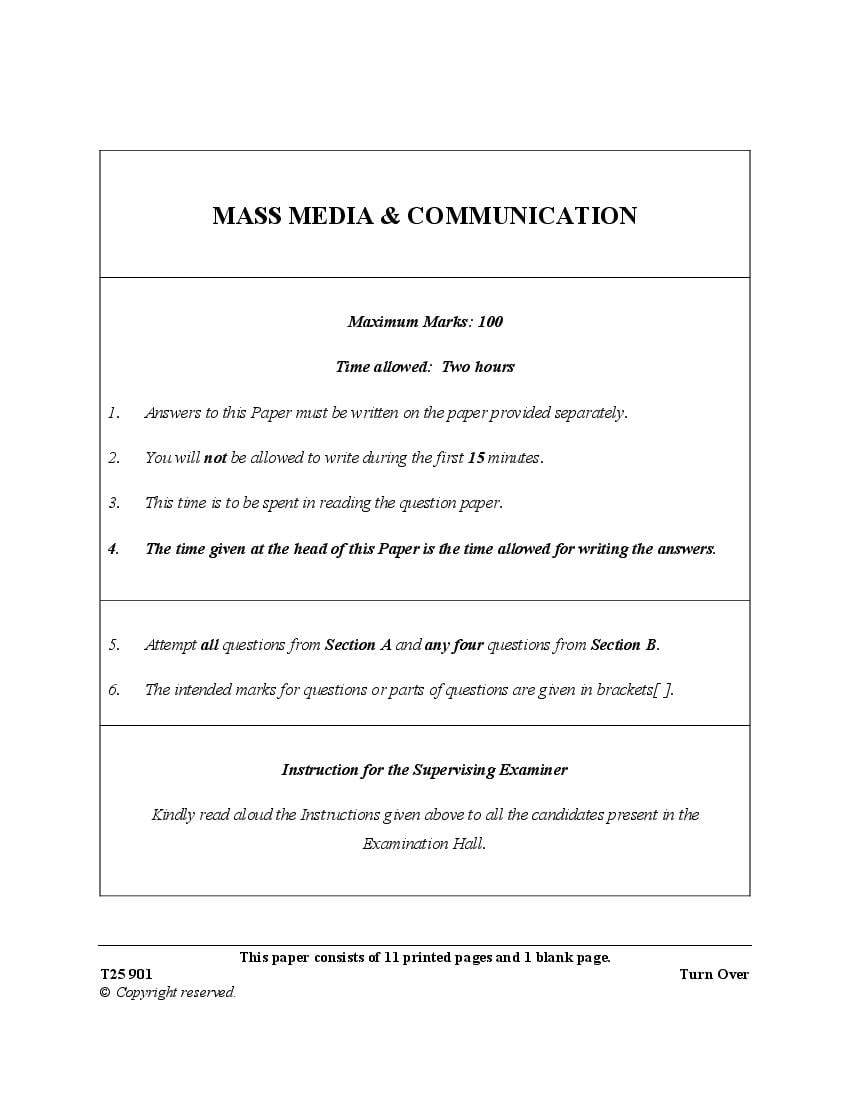 The complete Mass Media and Communication question paper of last year is as follows. However you may find more ICSE question paper pdf download link below.