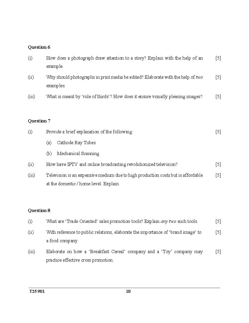 ICSE Class 10 Question Paper 2025 Mass Media and Communication View Download