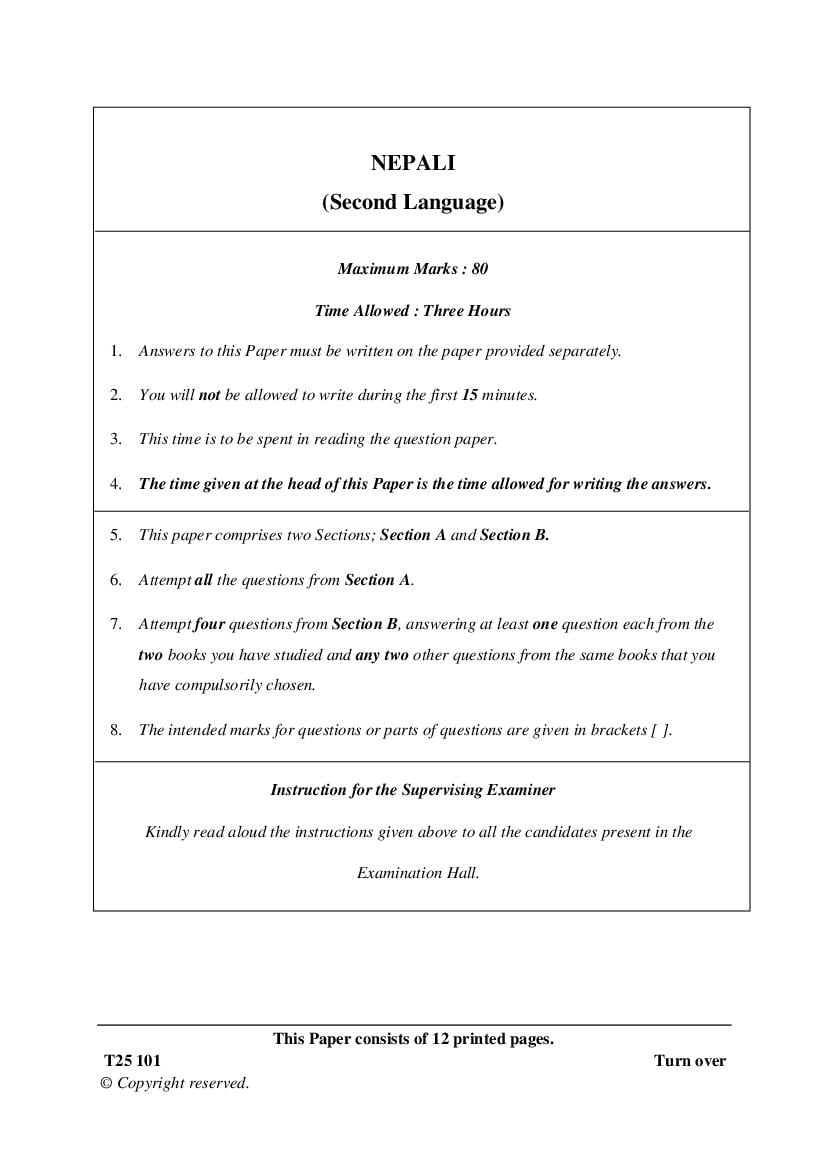 The complete Nepali question paper of last year is as follows. However you may find more ICSE question paper pdf download link below.