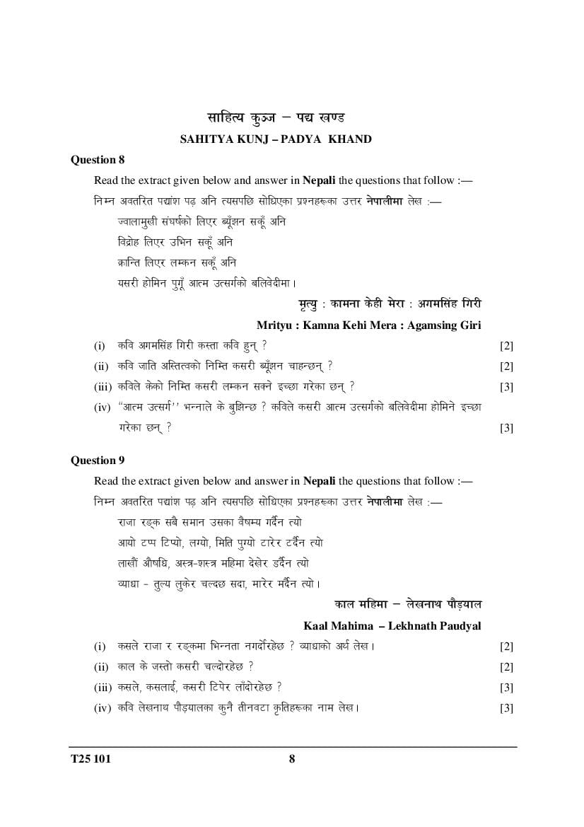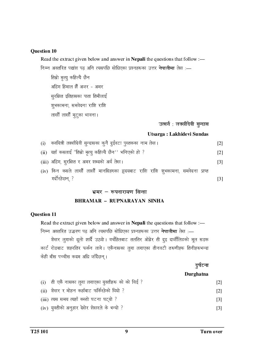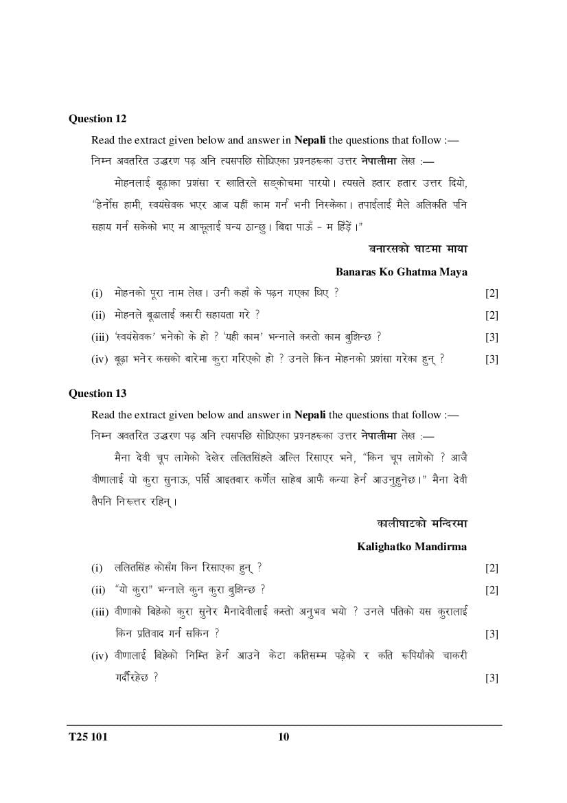 ICSE Class 10 Question Paper 2025 Nepali View Download