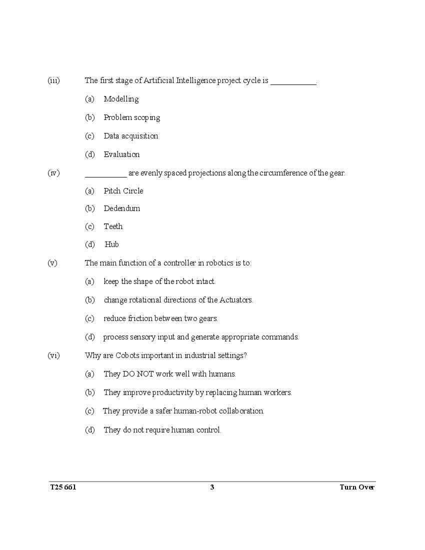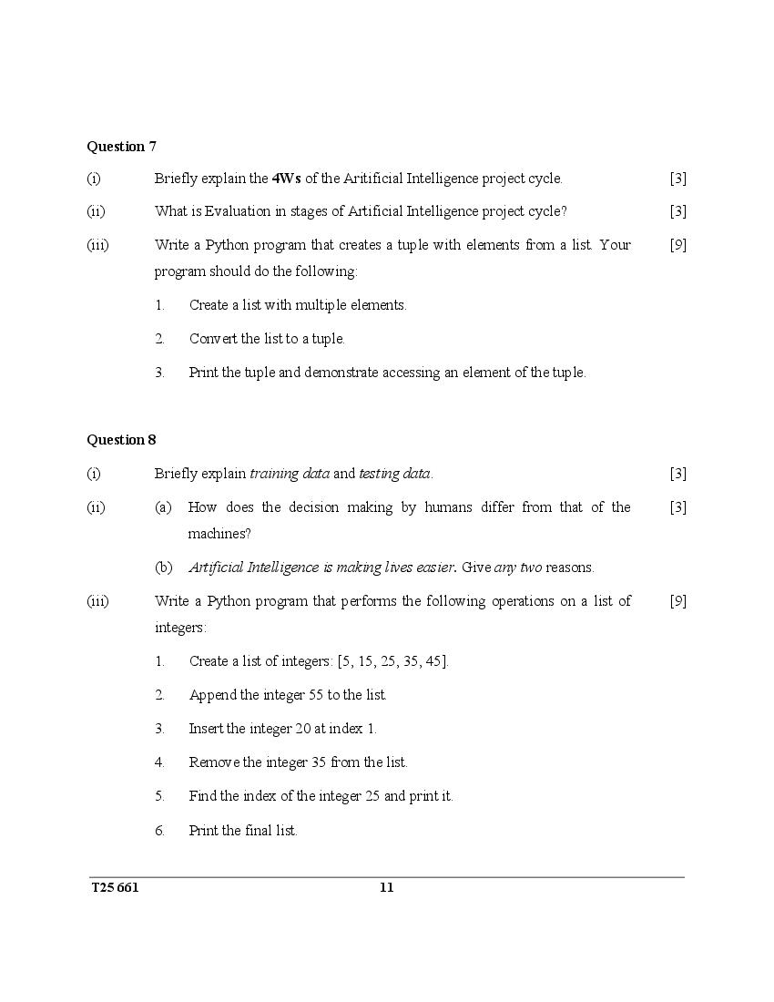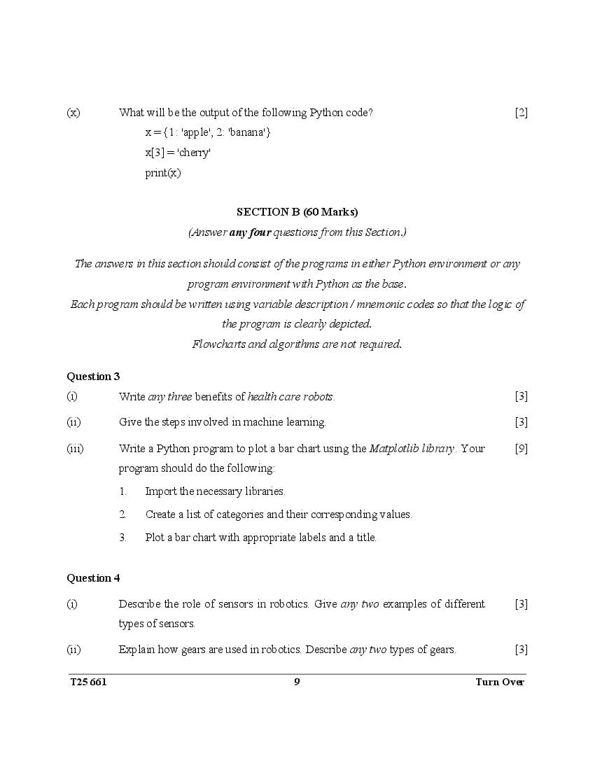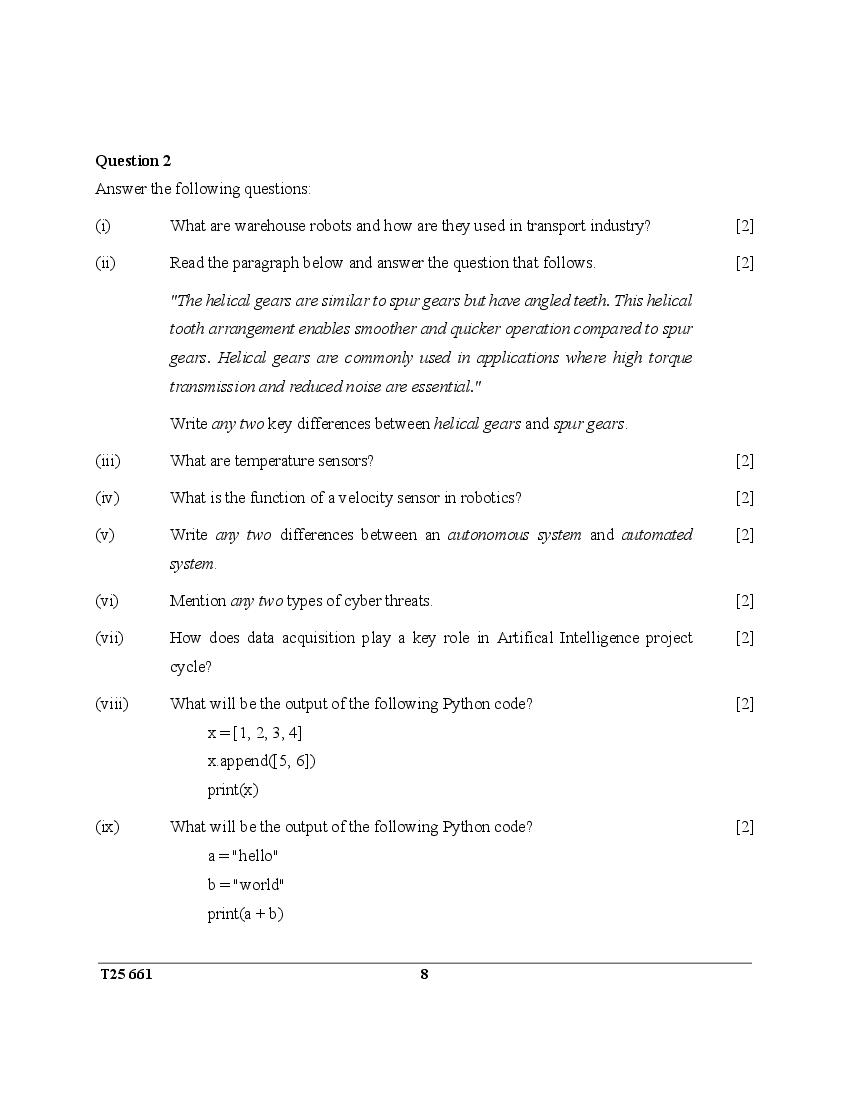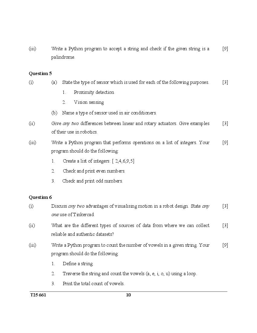 ICSE Class 10 Question Paper 2025 Robotics and Artifical Intelligence View Download