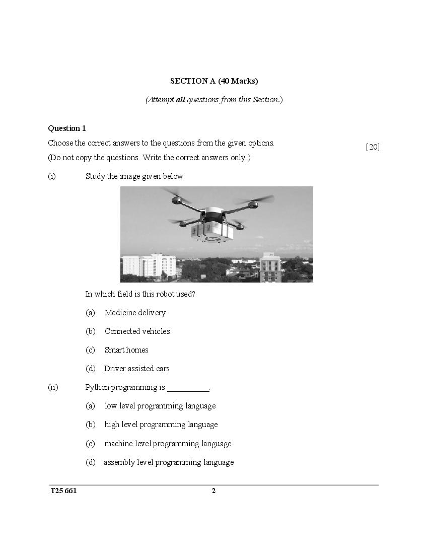 The CISCE previous year question paper of ICSE Class 10 for Robotics and Artificial Intelligence are as follows.