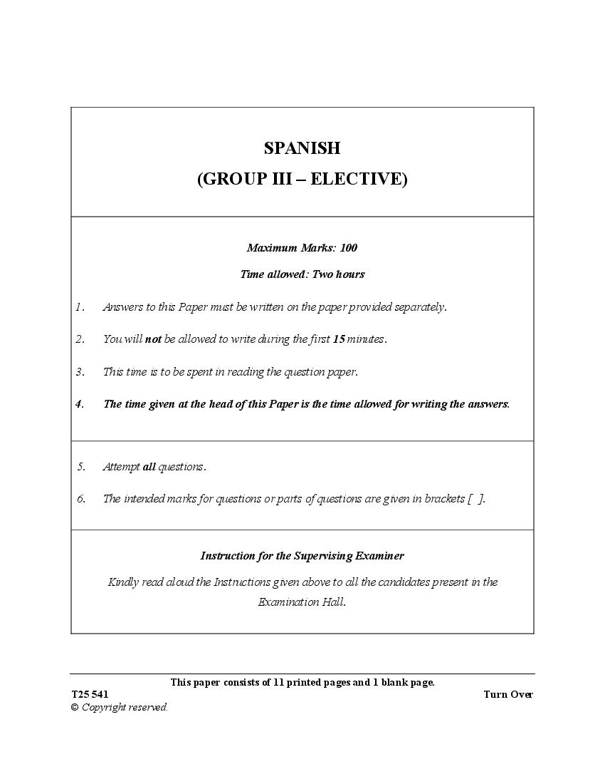 The complete Spanish Group 3 question paper of last year is as follows. However you may find more ICSE question paper pdf download link below.