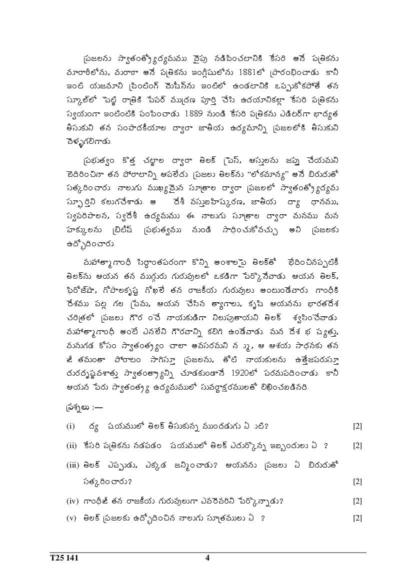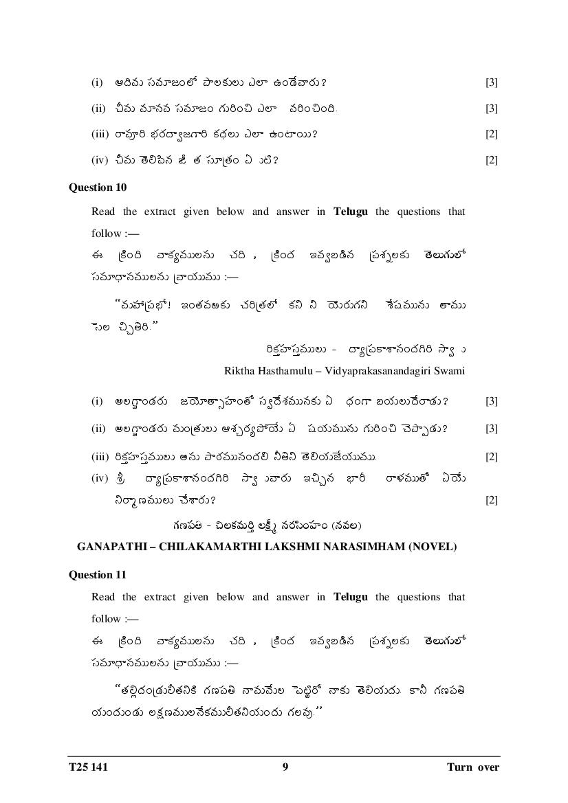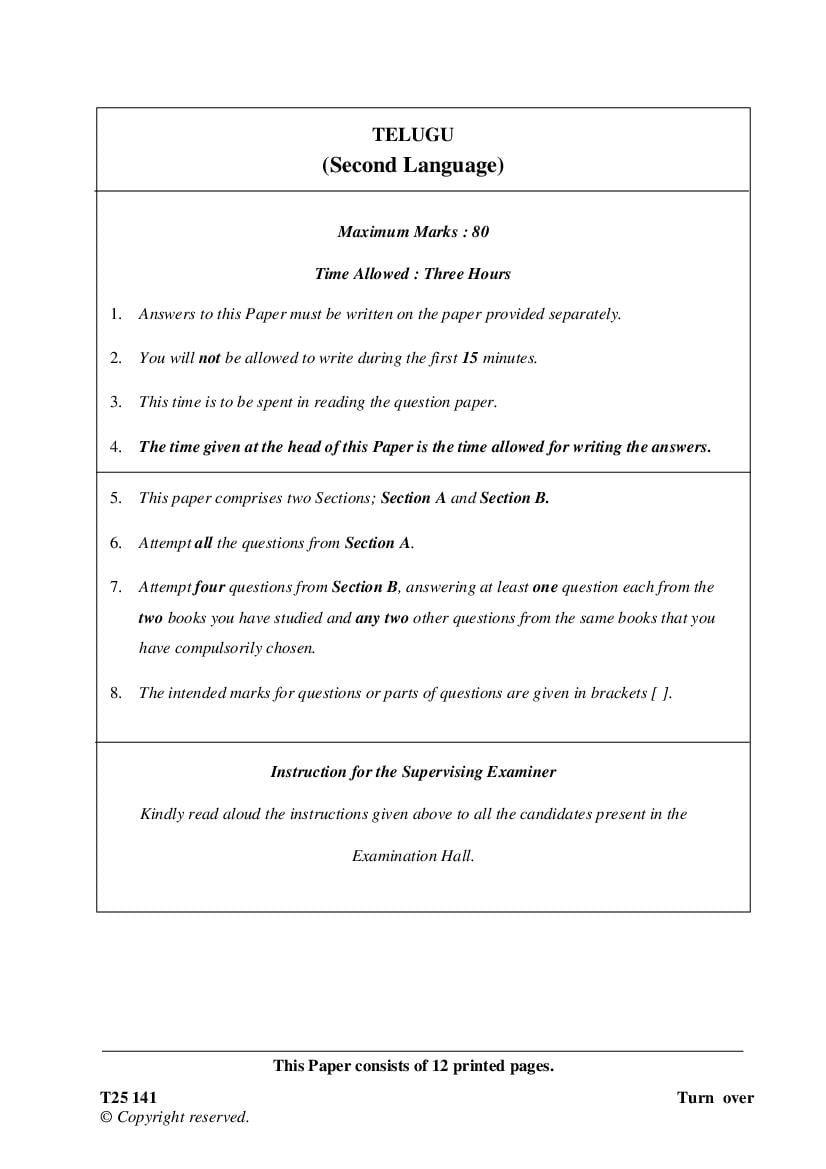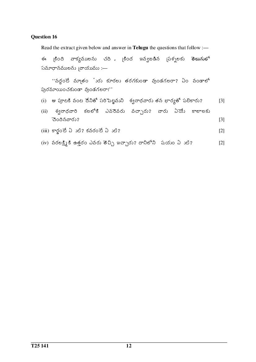 ICSE Class 10 Question Paper 2025 Telugu View Download