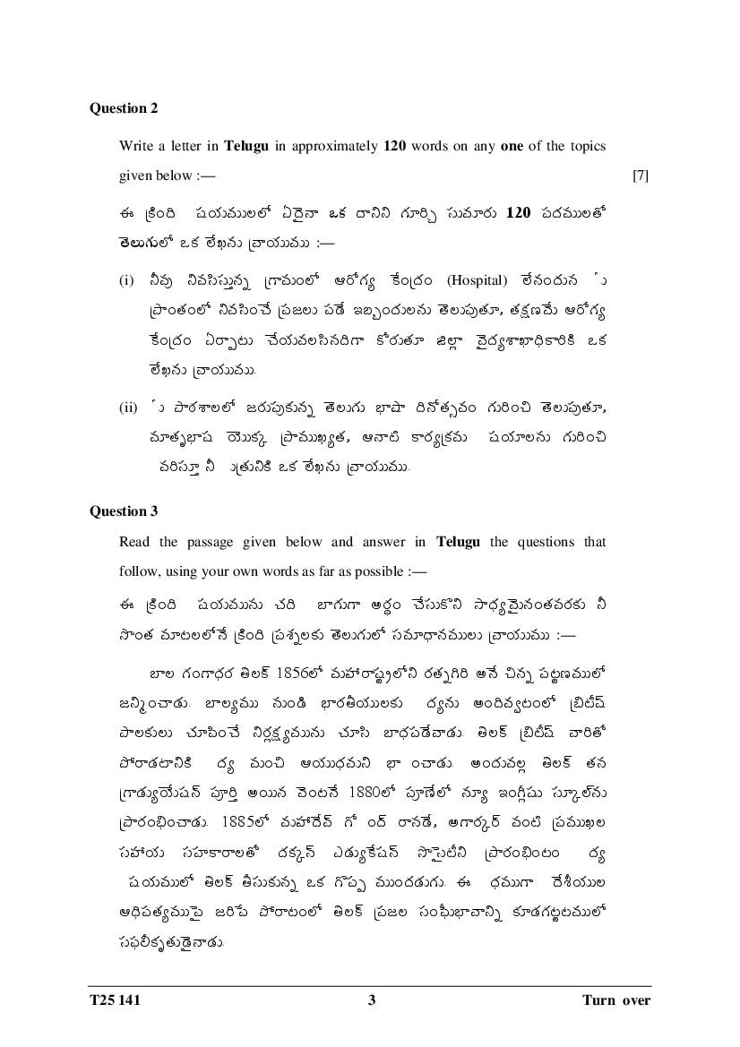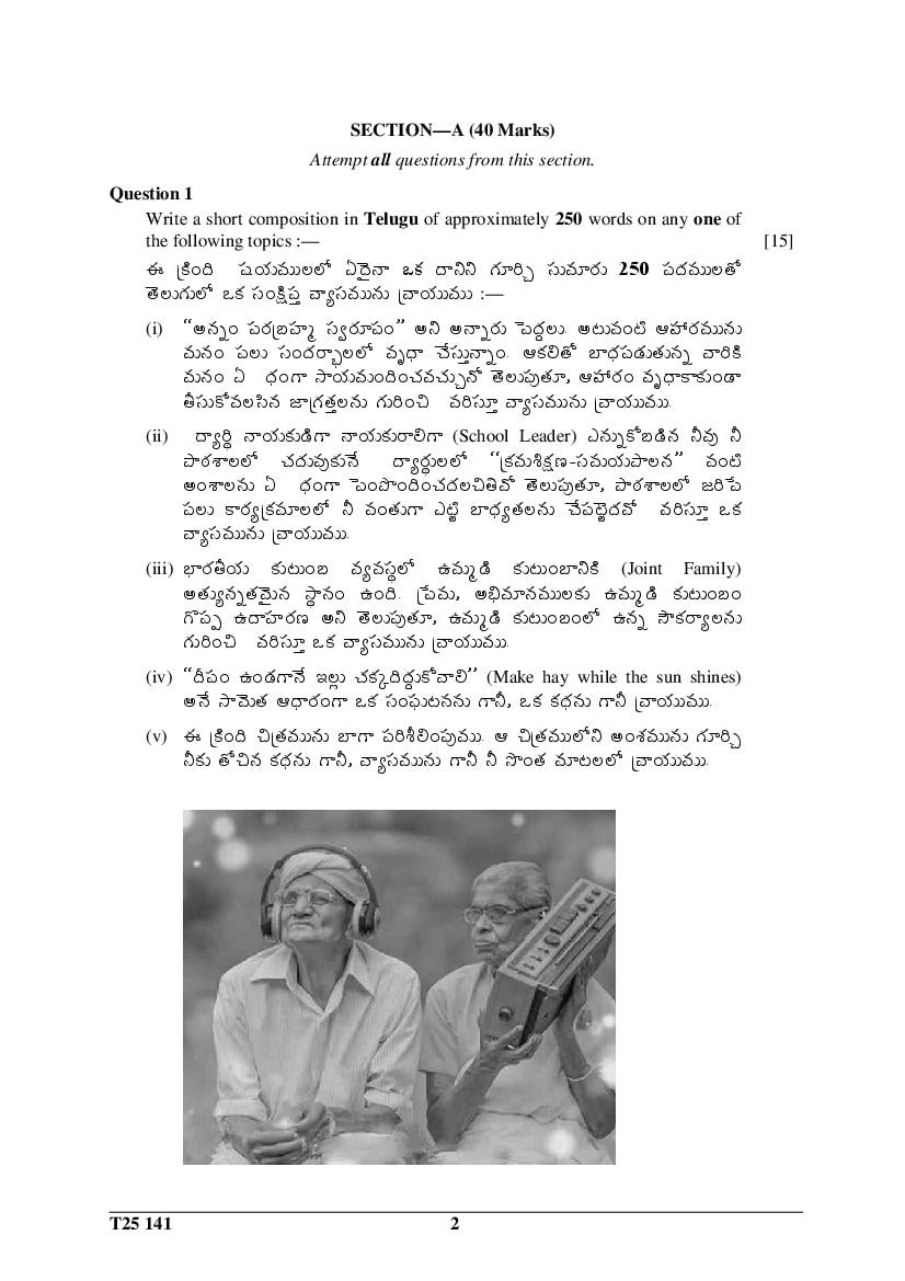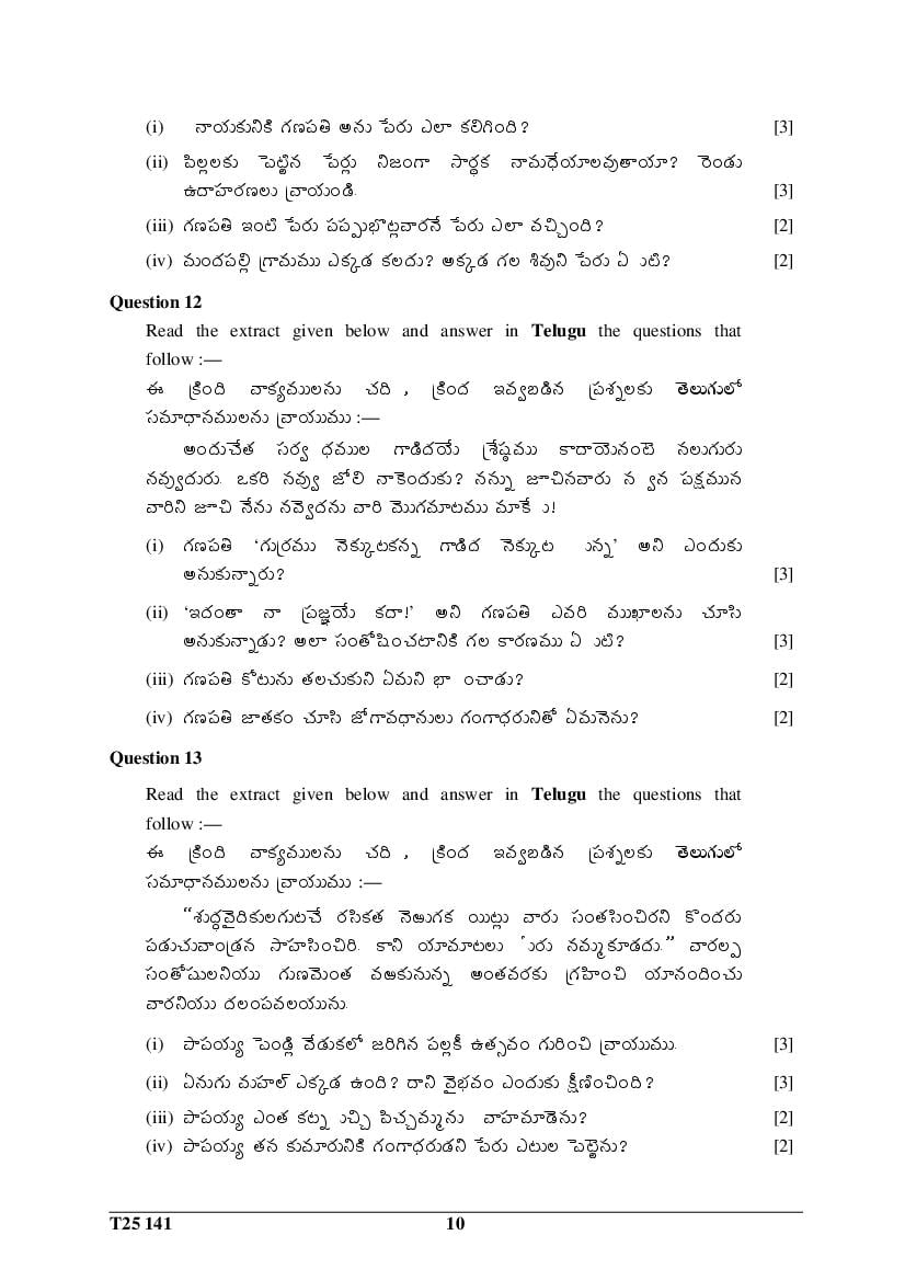 The CISCE previous year question paper of ICSE Class 10 for Telugu are as follows.
