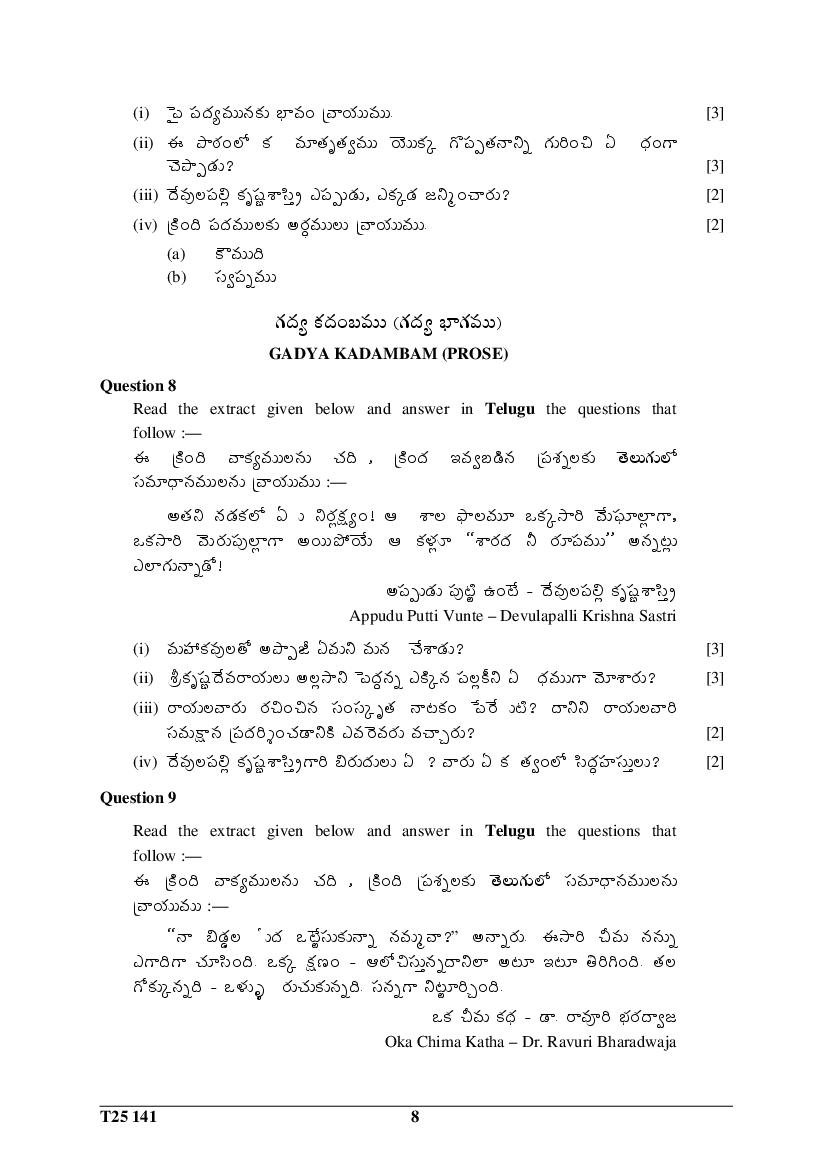 | Resources Here | CISCE Previous Year Question Papers of Class 10 Telugu |