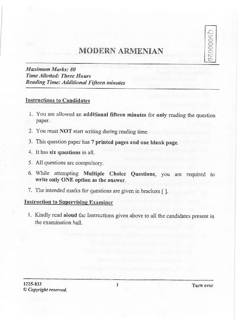 The complete Modern Armenian question paper of last year is as follows. However you may find more ISC question paper pdf download link below.