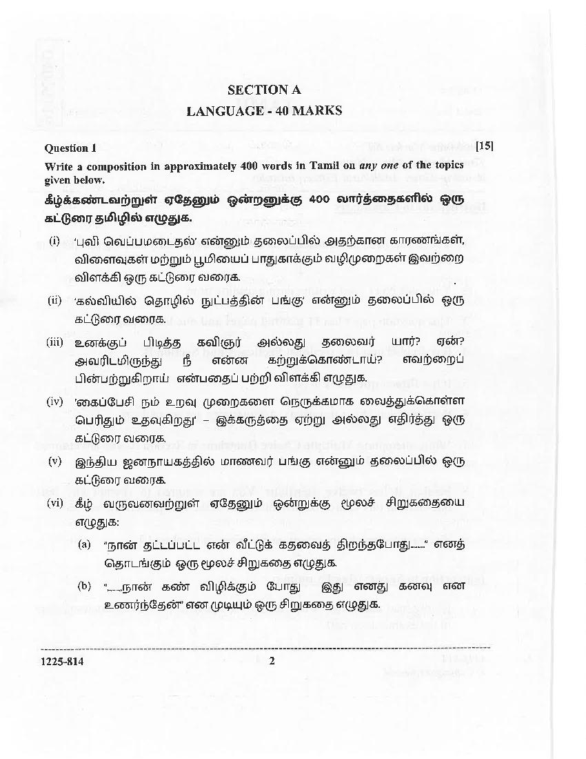 The complete Tamil question paper of last year is as follows. However you may find more ISC question paper pdf download link below.