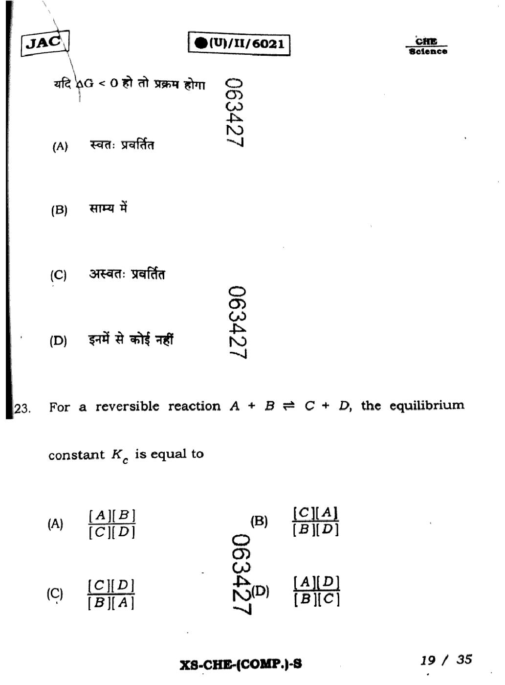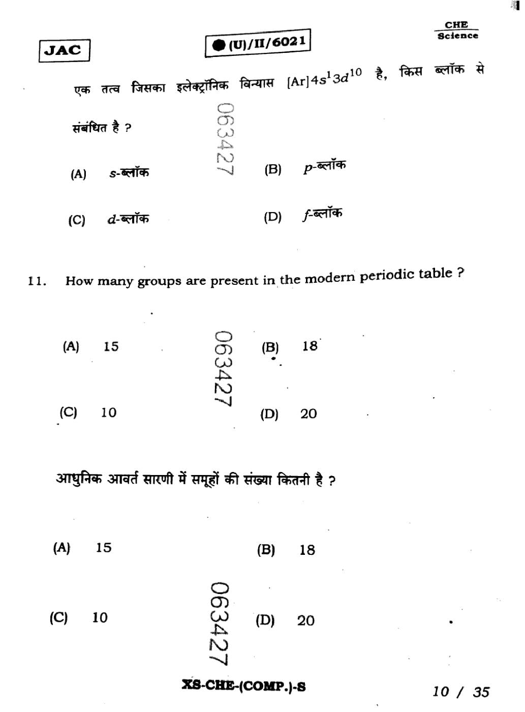 JAC Board Class 11 Chemistry Previous Year Question Paper PDF