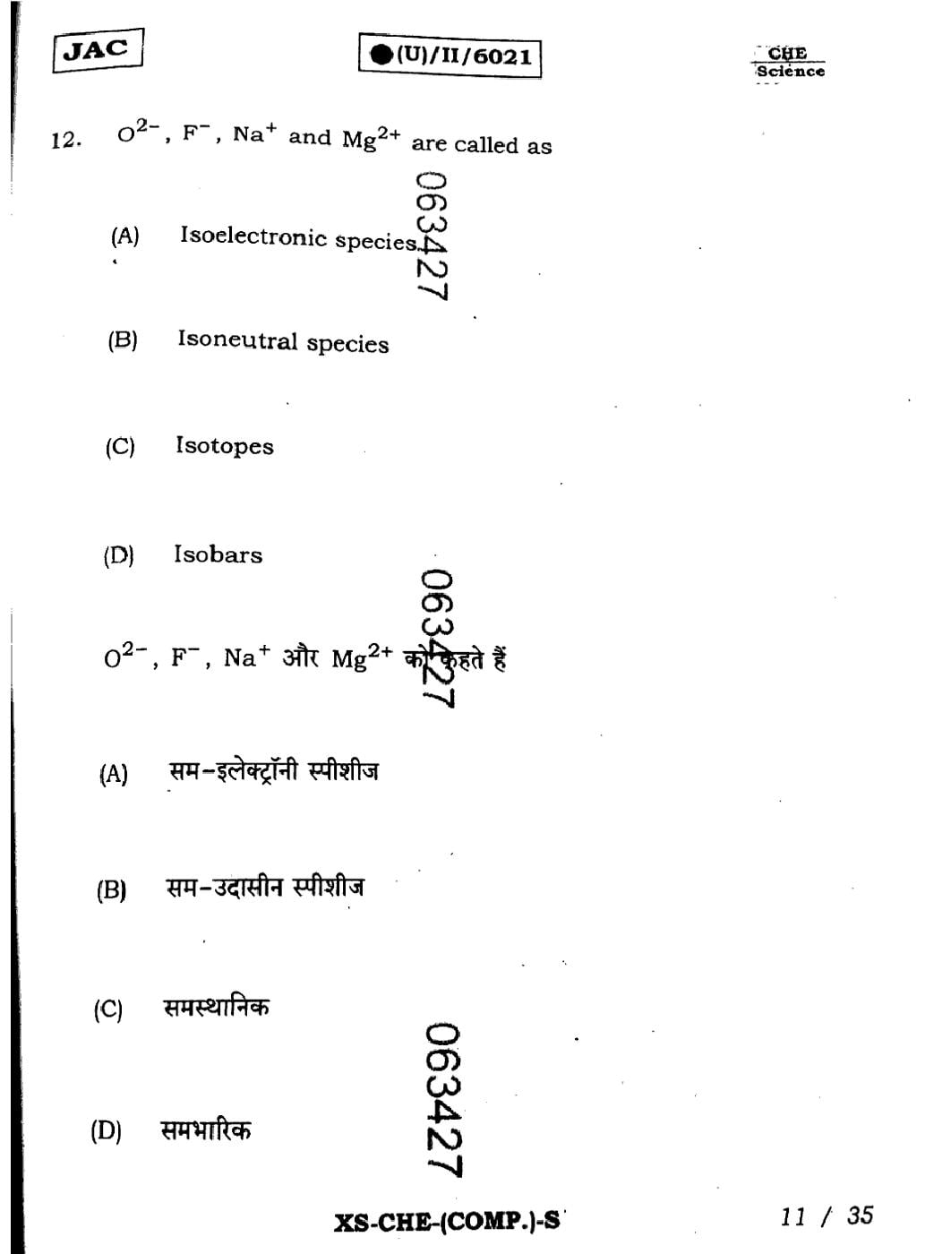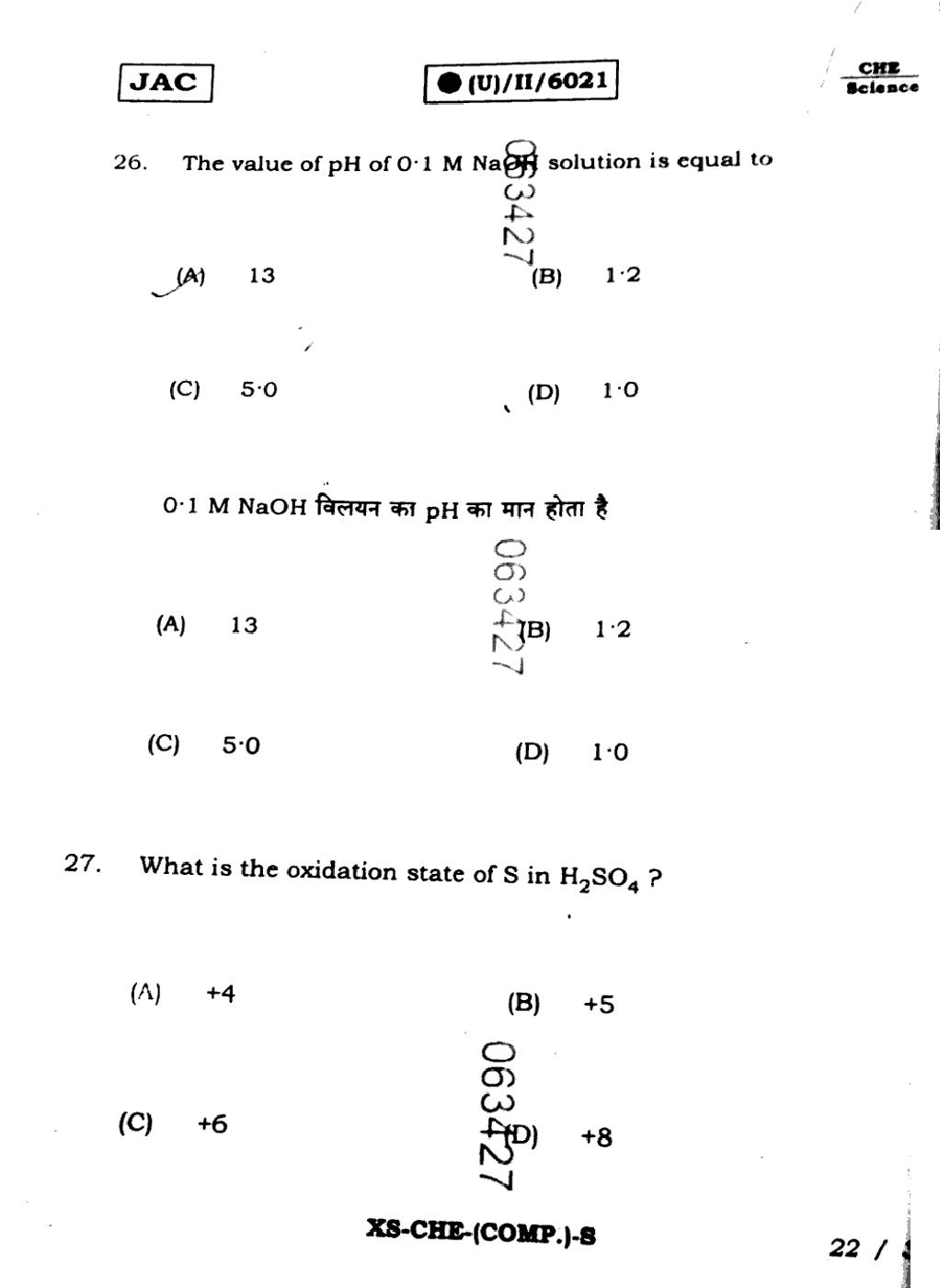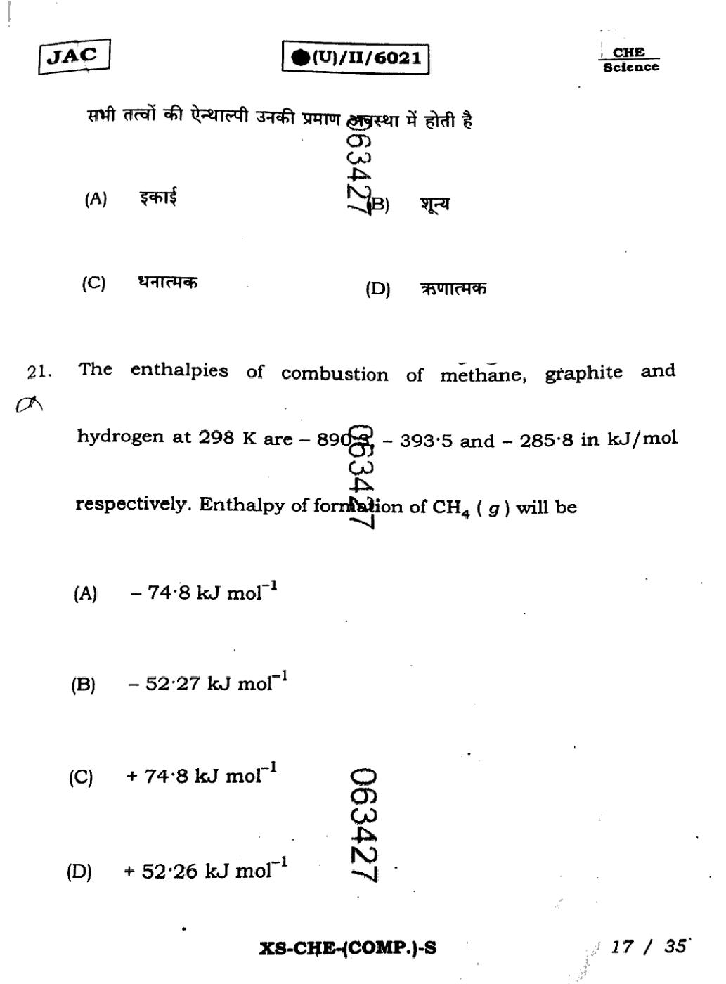 JAC Board Class 11 Chemistry Previous Year Question Paper