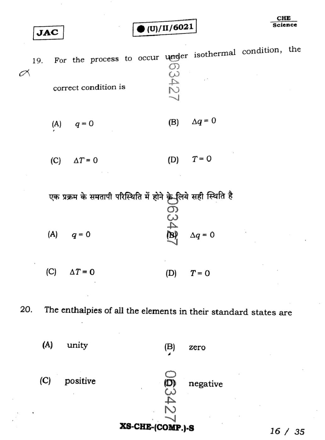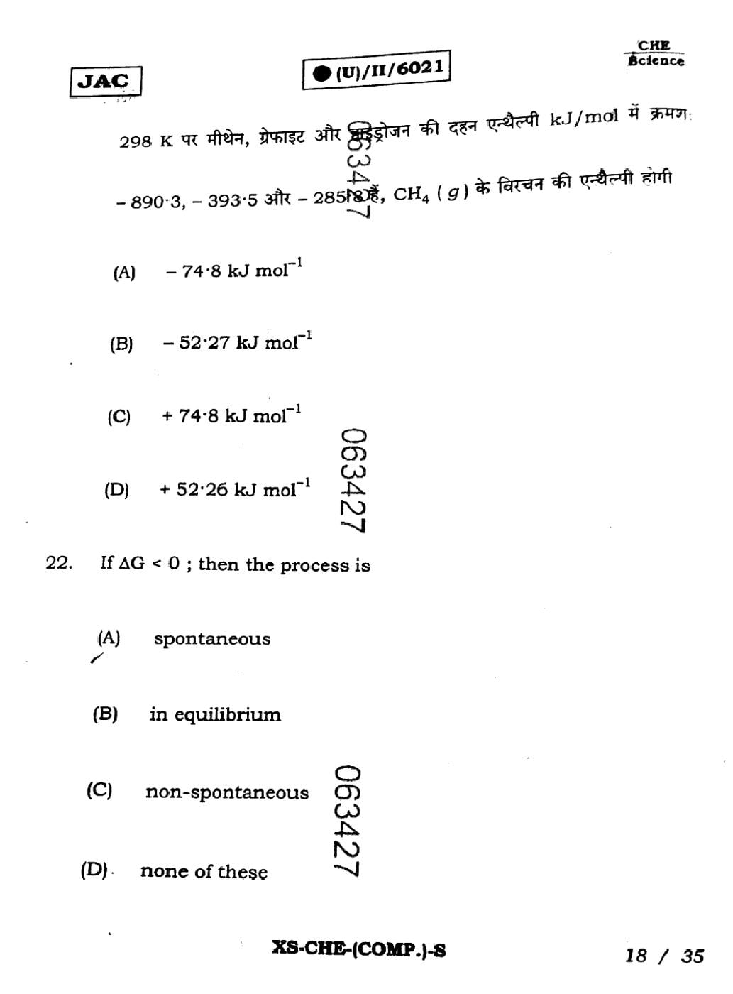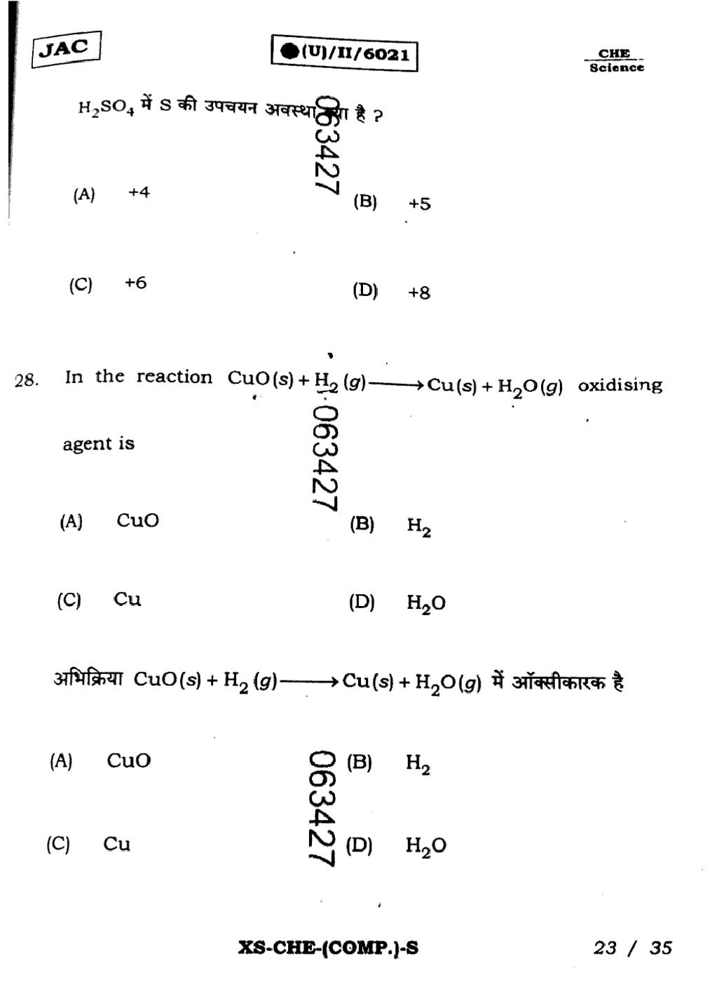 JAC Board Class 11 Chemistry Previous Year Question Paper