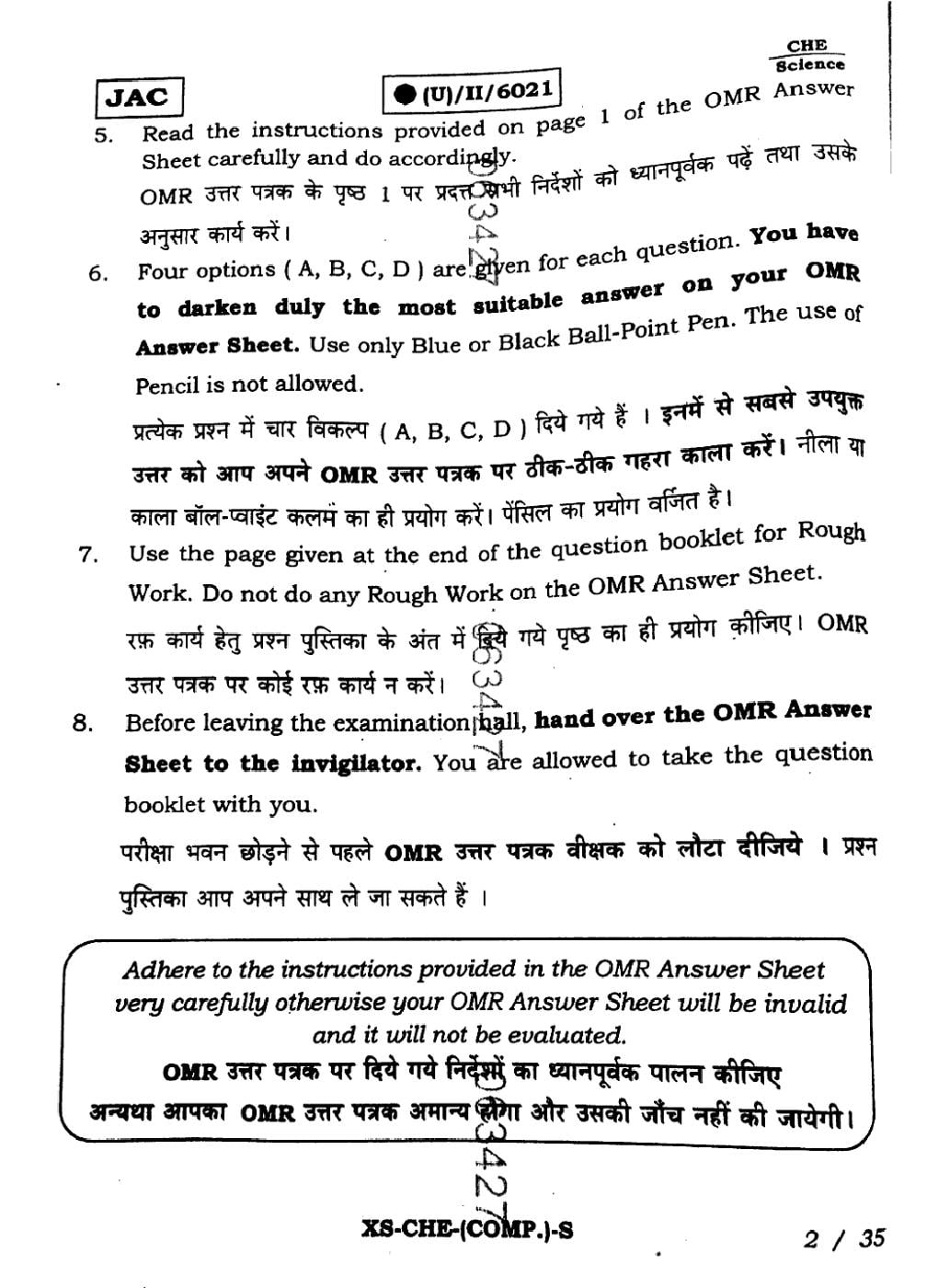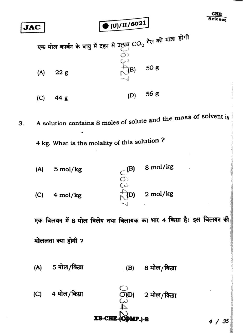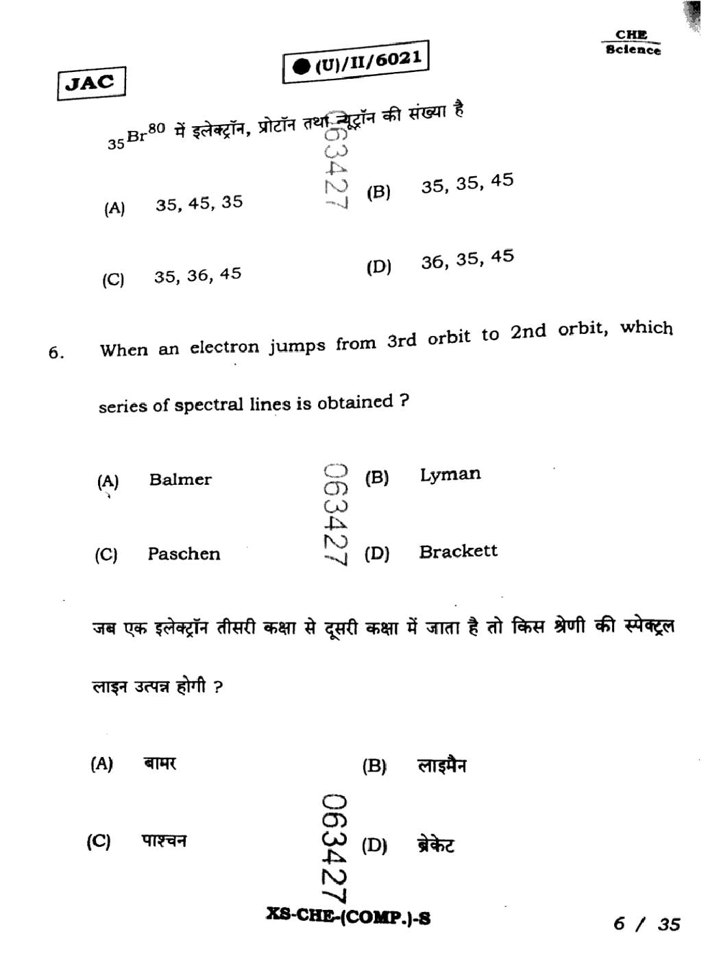 | Chemistry Sample Papers | JAC Class 11th Model Question Paper |