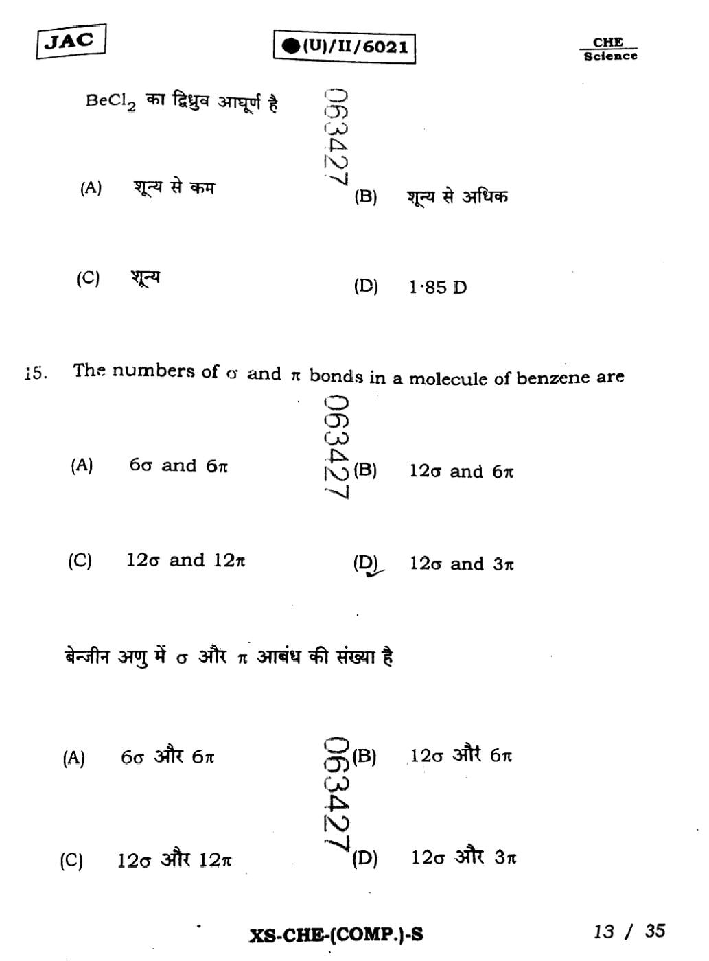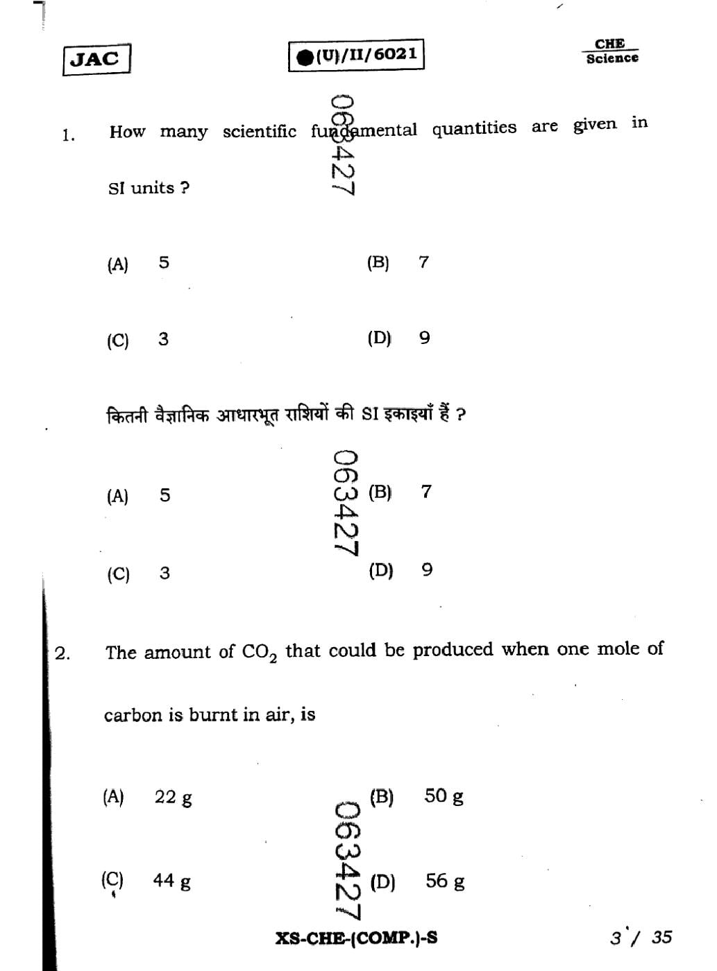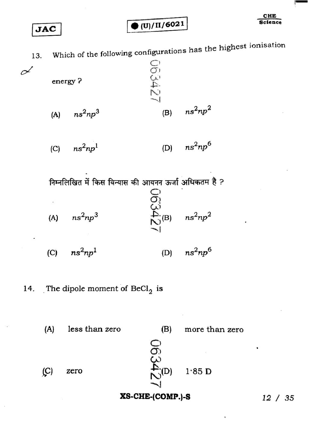 | Chemistry Sample Papers | JAC Class 11th Model Question Paper |