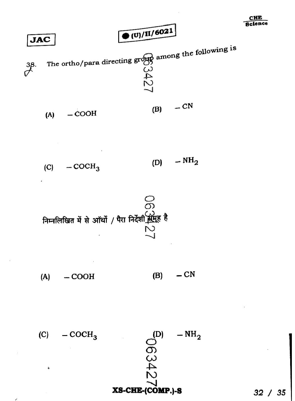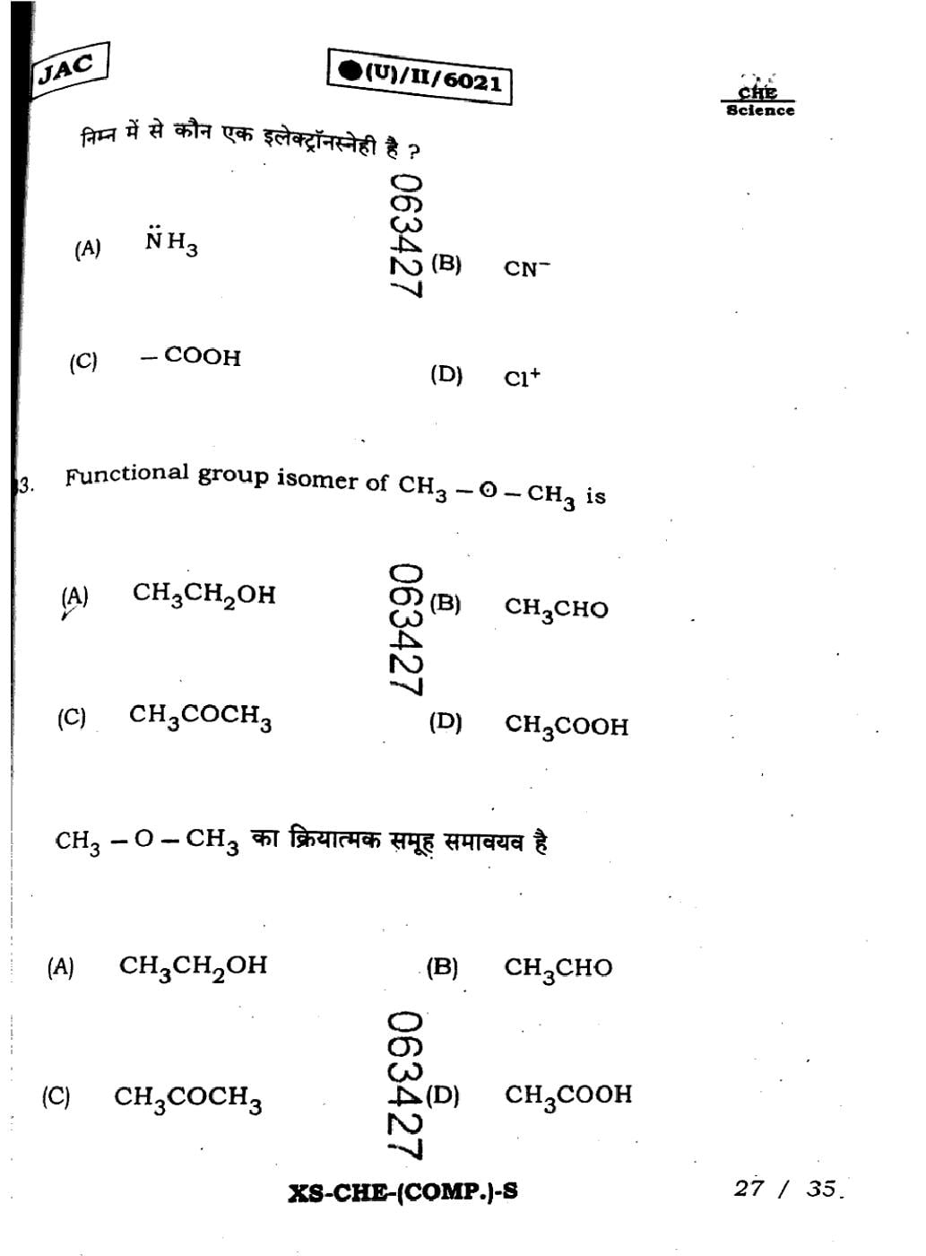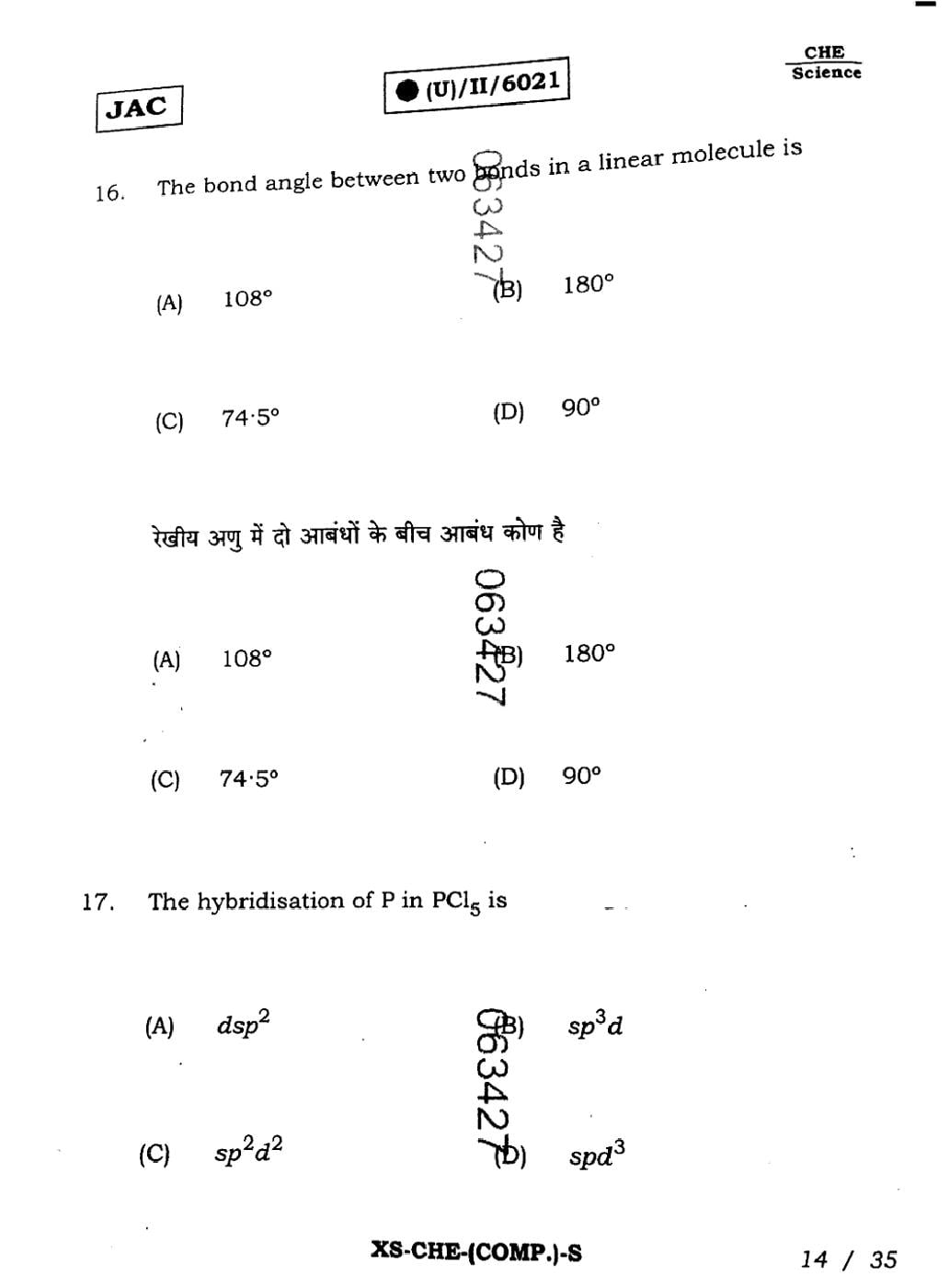 The JAC Board Previous Year Question Paper of Class 11 for Chemistry is as follows.