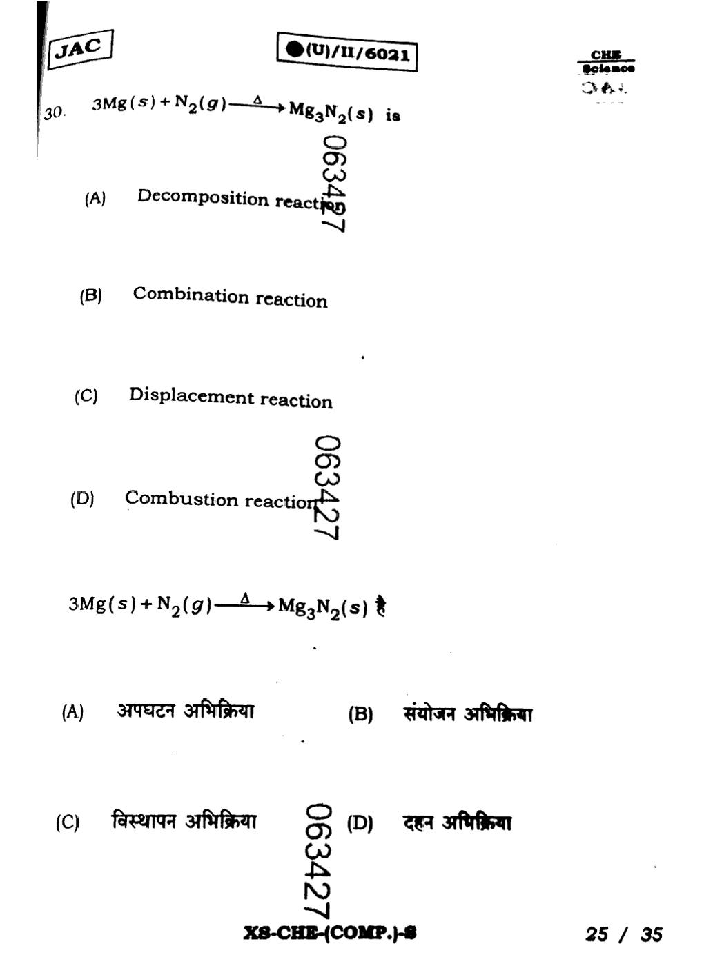 JAC Board Class 11 Chemistry Question Paper 2025 PDF Download Link – Click Here to Download Question Paper PDF