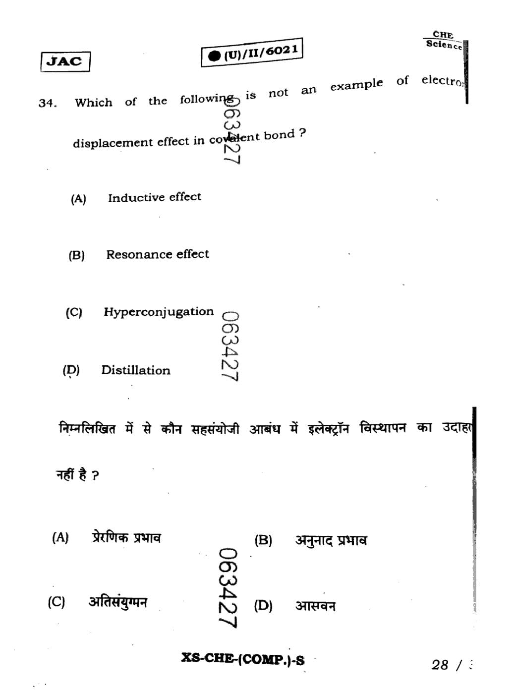 JAC Board Class 11 Chemistry Question Paper 2024 PDF Download Link – Click Here to Download Question Paper PDF