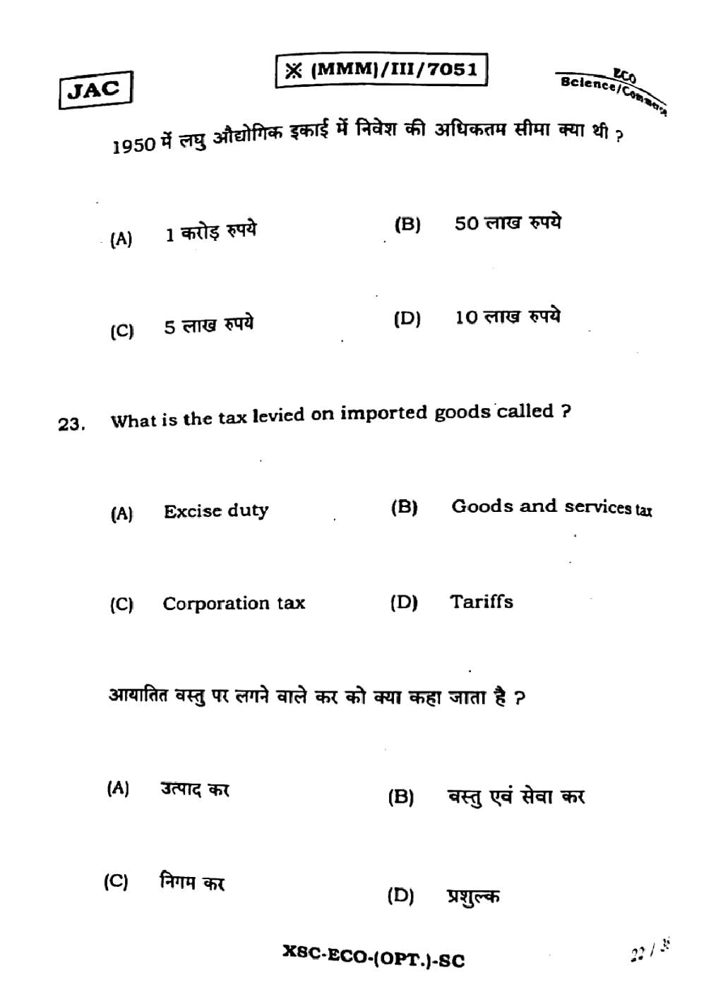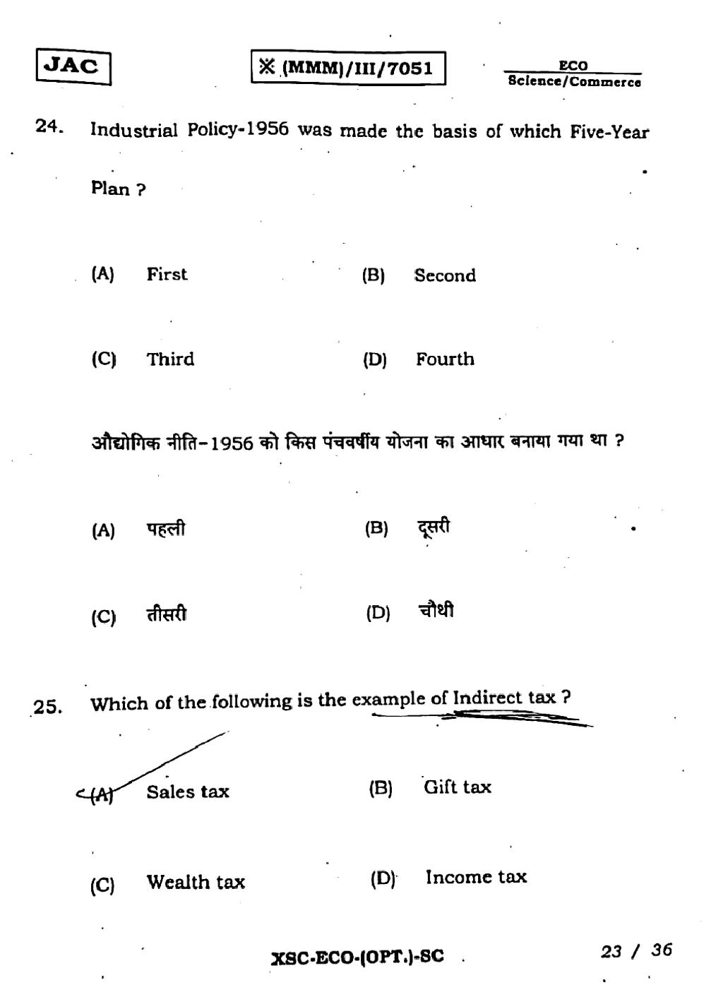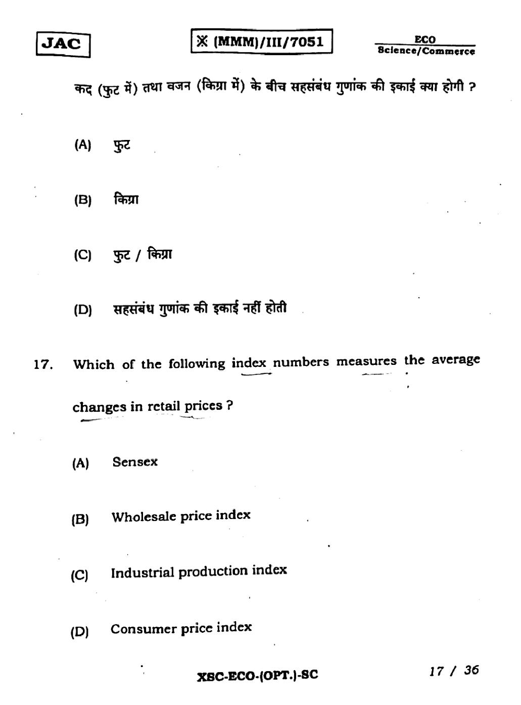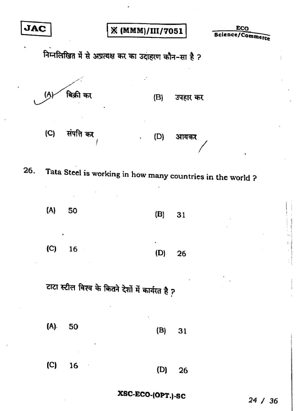 - JAC Class 11 Previous Year Question Papers